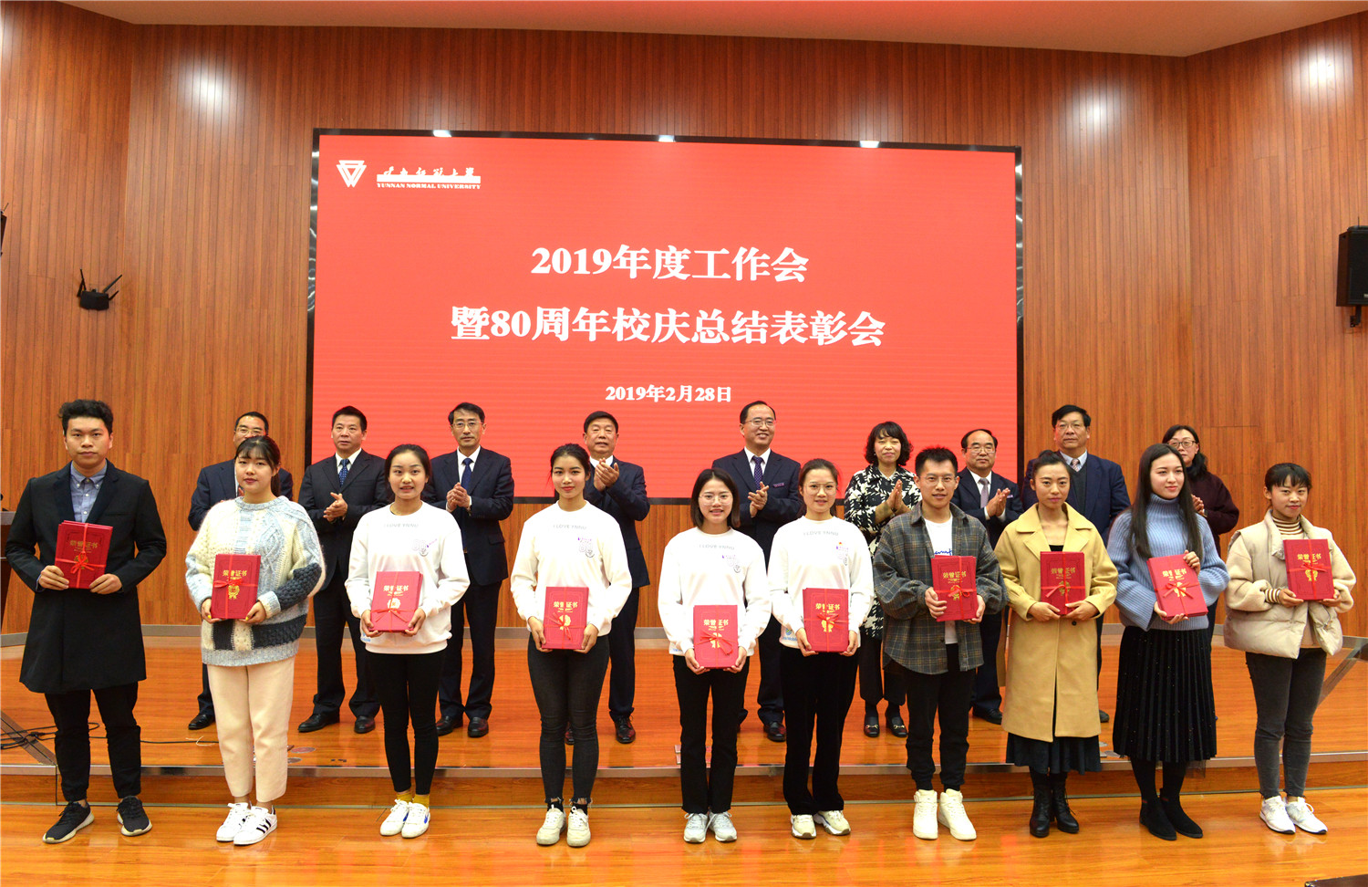 2月28日下午,必赢官网在呈贡主校区汇学楼2幢101报告厅召开了2019年度工作会暨80周年校庆先进集体、先进个人表彰会。校党政领导班子成员,省管干部,近三年离退休校领导,全校副处级以上干部(含非领导职务),省部级教学科研平台负责人,省党代会代表、人大代表、政协委员,各民主党派基层负责人,离退休党总支书记、副书记,校庆办全体人员,校庆先进集体、先进个人代表,师生代表共500余人参加会议。会议由校党委书记饶卫同志主持。