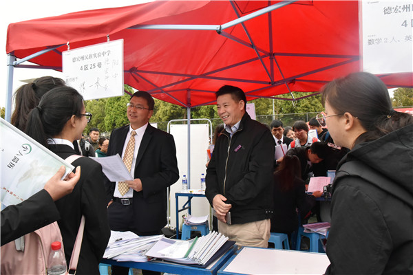 2019年3月14日,由云南省教育厅主办,437必赢会员中心和云南省教育厅大中专毕业生就业指导服务中心承办的“云南省2019 年公费师范毕业生专场双向选择供需洽谈会”暨 “云南省2019届师范类高校毕业生双向选择洽谈会”在437必赢会员中心呈贡主校区西区足球场举行,来自省内外共953家用人单位(其中省内用人单位811家,省外用人单位142)及4万名毕业生参加洽谈会,这是云南省最大规模招聘会。云南省教育厅,昆明市教育局、昆明市人才中心、北京师范大学、西南大学、陕西师范大学及省内其它高校就业主管部门的相关领导参加了本次洽谈会,学校党委副书记张玮、副校长刘宗立到招聘会现场指导。