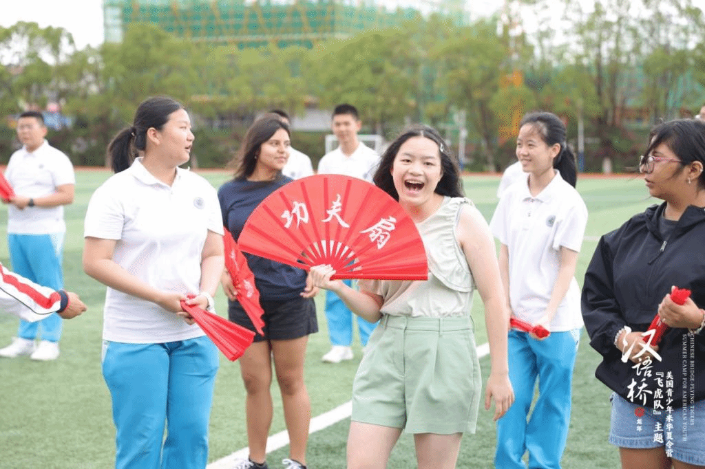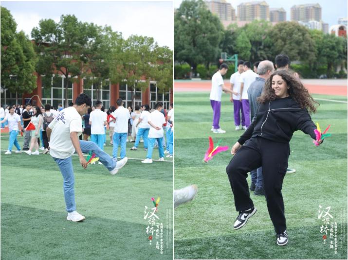 随后,营员们一起参加了丰富多彩的课间活动,一起体验健康操、功夫扇、踢毽子、跳长绳、跳竹竿、打跳等趣味体育活动。美国青少年们对学校的课间体育活动充满了好奇和兴趣,一一体验特色项目,玩得不亦乐乎,活动现场充满了欢声笑语。