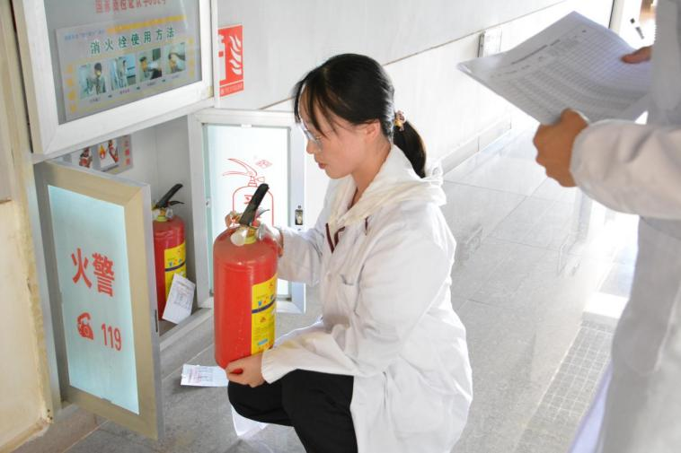 第二阶段为实验室消防安全技能考核。按照考核要求和评分标准,全体实验室人员依次接受了实验室消防设施检查、实验室初起火灾处置、实验室紧急疏散逃生和实验室消防安全器材使用等四个环节的现场考核。