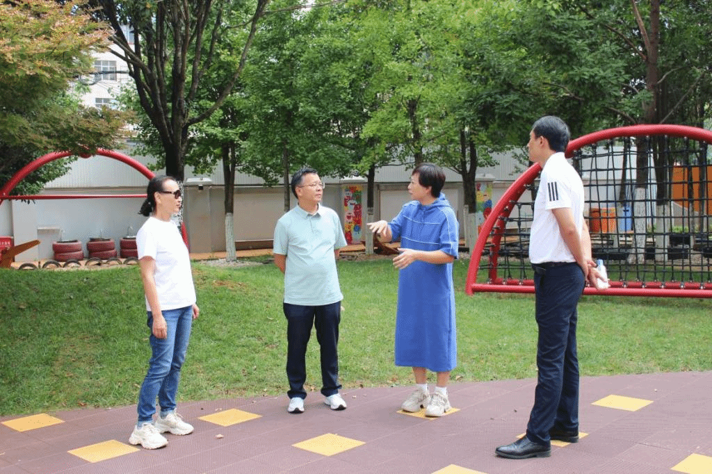 孟庆红查看了各附属幼儿园的教学设施、活动场地、教室环境等。听取了幼儿园园长关于办园理念、师资队伍建设、课程设置、办园特色、日常活动开展等情况汇报。
