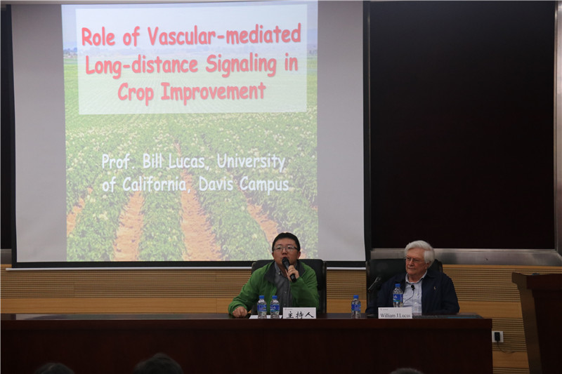 18日上午,Lucas教授作了题为“Role of Vascular-mediated Long-distance in crop improvement”的专题学术报告,为师生详细讲解了维管束介导的长距离运输在作物改良中的重要作用。