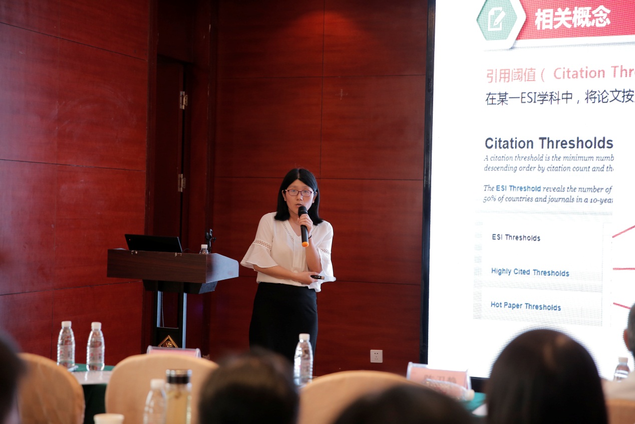 电子科技大学图书馆学科馆员陈卫静老师和超星集团南京研究院徐贵水分别作了题为《基于数据的学科分析与评价(ESI视角)》和《“双一流”背景下的学科评价与服务--CESI介绍及实证》的学术报告。