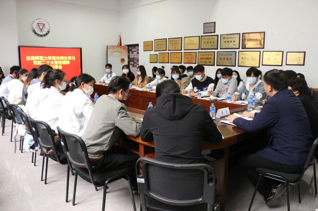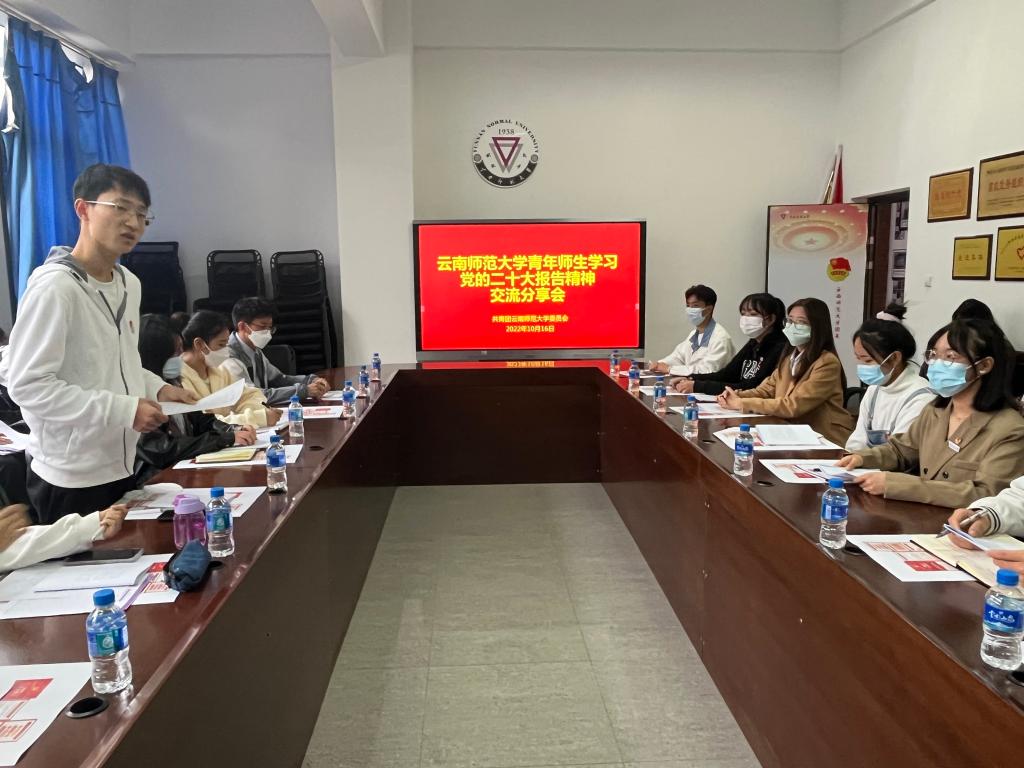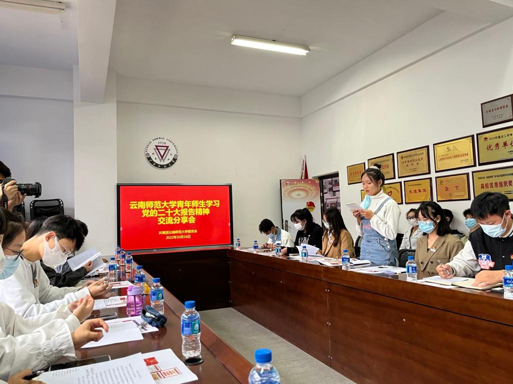 10月16日下午,由校党委宣传部指导、校团委组织的437必赢会员中心青年师生学习党的二十大报告精神交流分享会在呈贡主校区大学生活动中心会议室举行,校党委李宏副书记参加分享会并讲话,校团委书记郑伟俊主持活动。