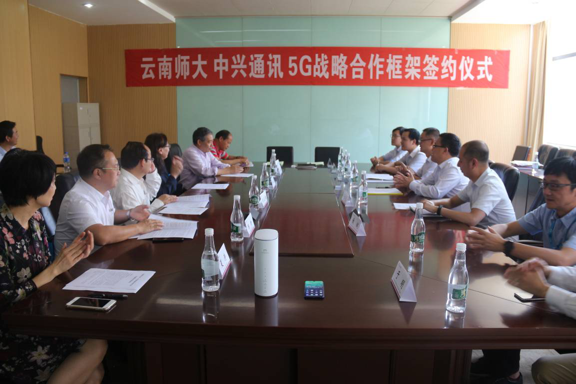 2019年5月30日,必赢官网与中兴通讯股份有限公司在呈贡校区睿智1号楼签署5G战略合作框架协议。中兴通讯股份有限公司昆明办事处副总经理陆勇林、中兴教育管理有限公司西南片区经理蒋仕愚等中兴通讯方面人员8人,必赢官网武友德副校长、郝淑美副校长以及教务处、科研处、信息处、物理与电子信息学院等相关单位负责人出席签约仪式。
