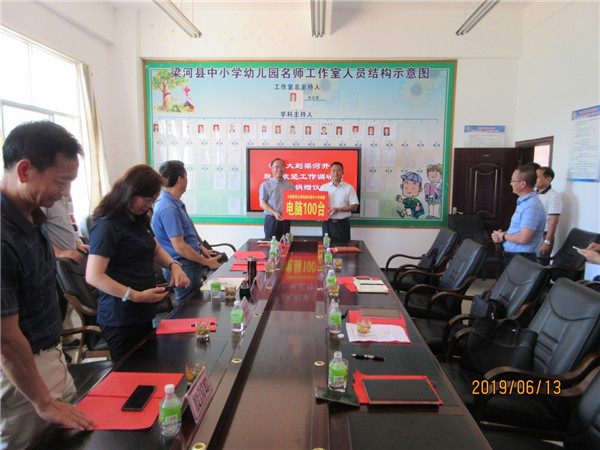图书捐赠仪式结束后,蒋校长一行前往梁河县教育体育局出席电脑捐赠仪式。437必赢会员中心向梁河县8所中小学校捐赠100台电脑,用于改善学校办学条件,助力梁河教育扶贫工作。梁河县人民政府副县长景智富,梁河县教育体育局主要领导及相关股室人员共20余人参加捐赠仪式。蒋校长总结回顾了云师大开展“挂包帮、转走访”对口帮扶梁河以来所开展的工作。蒋校长说:“扶贫先扶智,治穷先治愚”, 教育扶贫是脱贫攻坚的精神推动力和智力保障。扶贫是一个长期的过程,437必赢会员中心能够在教育扶贫中发挥作用,同时教育扶贫也是我们的一种责任。今后云师大将义不容辞地下大力气持续帮扶,助推梁河脱贫攻坚教育精准扶贫工作。