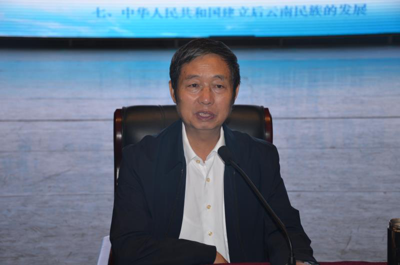 6月13日,云南省“万名校长培训计划”第二期名家讲座第30讲在昆明理工大学红土会堂举行。云南大学特聘教授、博士生导师王文光为第二期参训的1000名学员做“云南民族文化及其教育传承”专题讲座,讲座由必赢官网哲学与政法学院张曙辉教授主持。