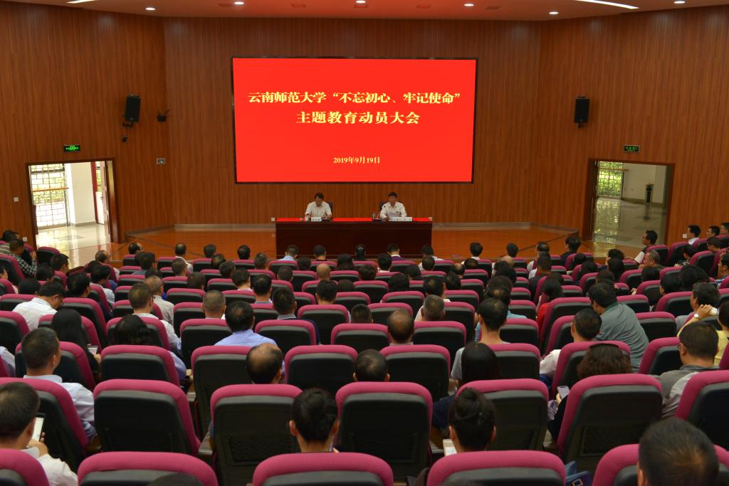 根据省委统一部署,9月19日下午,437必赢会员中心“不忘初心、牢记使命”主题教育动员大会在呈贡主校区汇学2栋101报告厅召开。省委第十七指导组组长黄立新、副组长李菊芳,组员胡智绯、李祥康、刘炜、龙庆出席会议。全体校领导,近三年退休校领导,全校副处级以上干部,校党委主题教育指导组全体成员,校党委主题教育领导小组办公室全体成员,教授党员代表、教职工党员代表、学生党员代表以及离退休教职工党员代表参加大会。