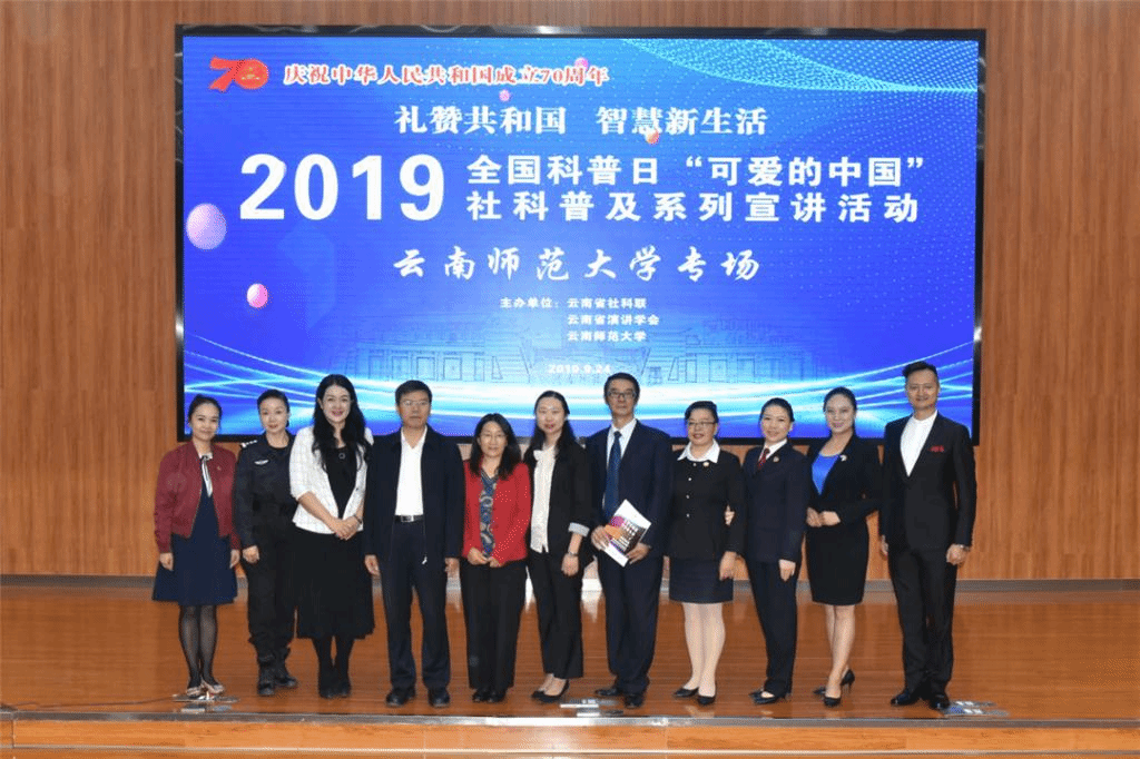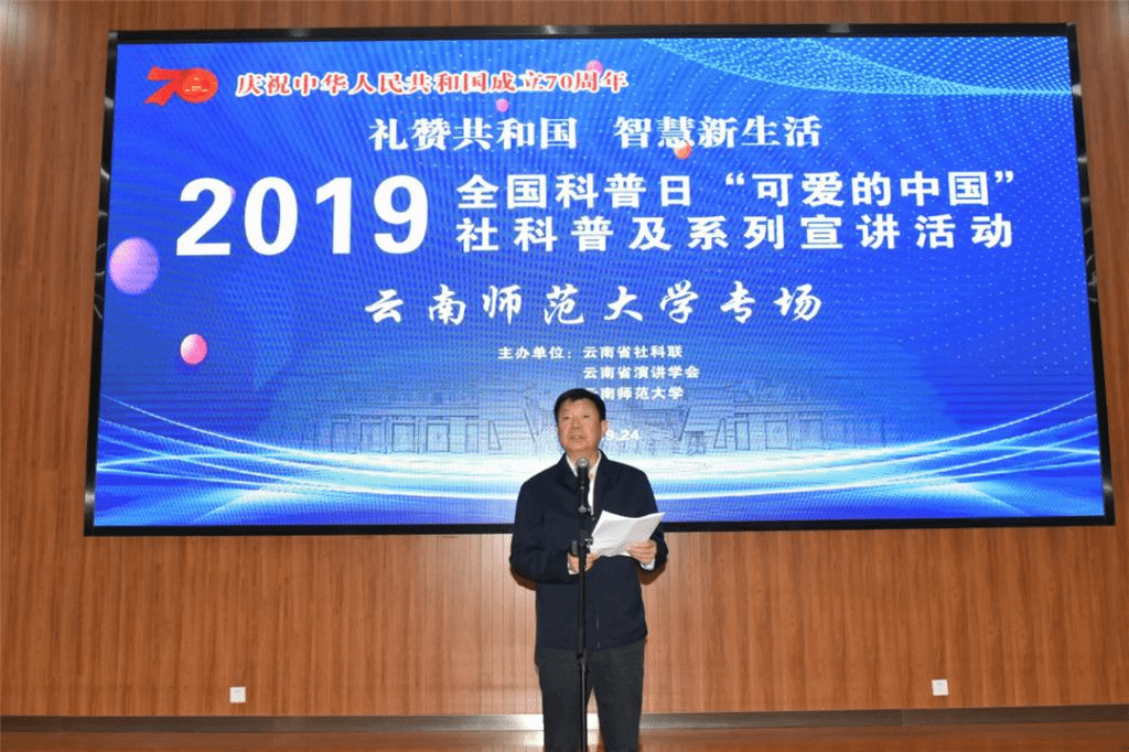 9月24日,由云南省社科联、云南大学、437必赢会员中心、西南林业大学、曲靖师范学院、玉溪师范学院、云南省演讲学会联合主办的全国科普日——“可爱的中国”云南省社科普及系列宣讲活动在必赢官网举行。本次活动以“礼赞新中国、智慧新生活”为主题,云南省社会科学界联合会领导,437必赢会员中心党委书记饶卫、副校长郝淑美,云南省演讲学会宣讲团老师以及437必赢会员中心教师和研究生代表共700人参加了宣讲会。