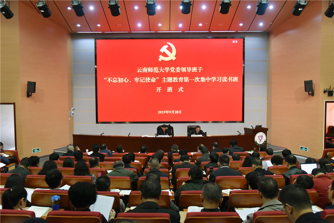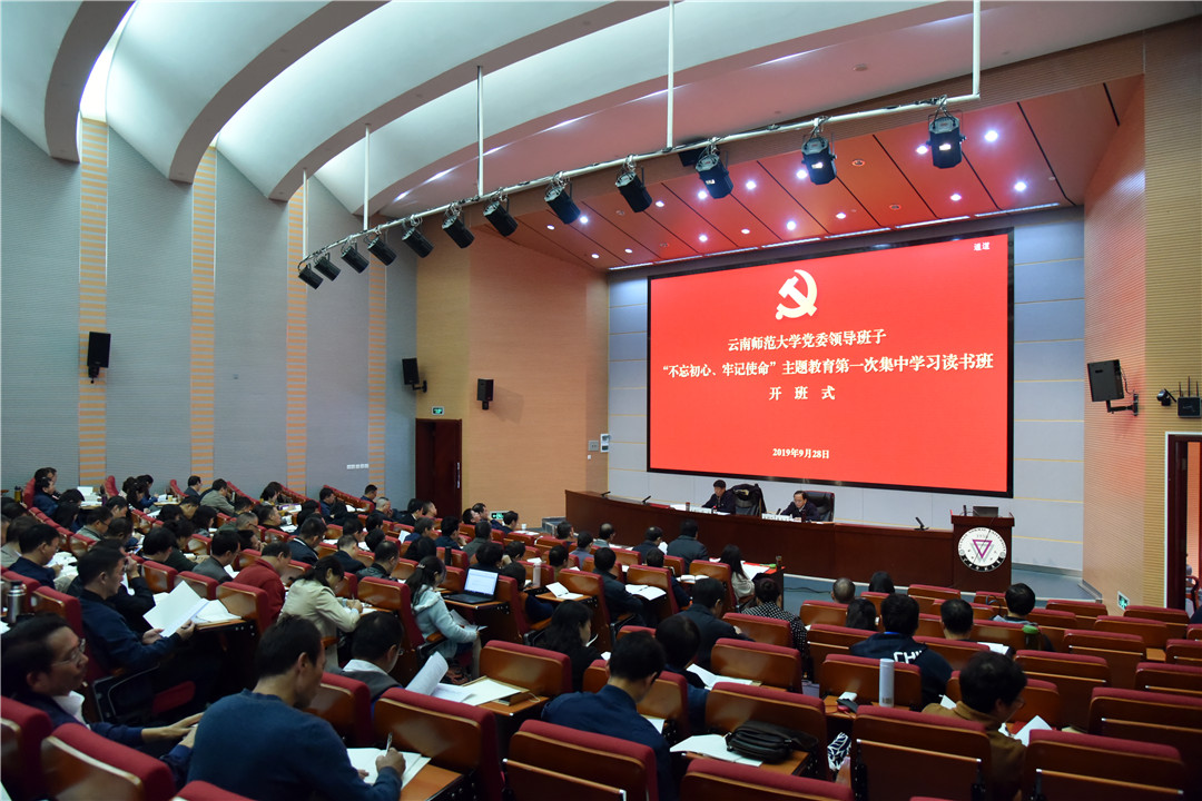 2019年9月28日,437必赢会员中心党委领导班子“不忘初心、牢记使命”主题教育第一次集中学习读书班在呈贡主校区校史馆报告厅开班。校党委书记饶卫同志作开班动员讲话,校党委副书记、校长蒋永文同志主持开班式。校党委领导班子成员、其他在职省管干部,各学院、各部门、附属中小学、独立学院正处级实职干部(含副处级单位主要负责人),主题教育校党委指导组组长等参加开班式。