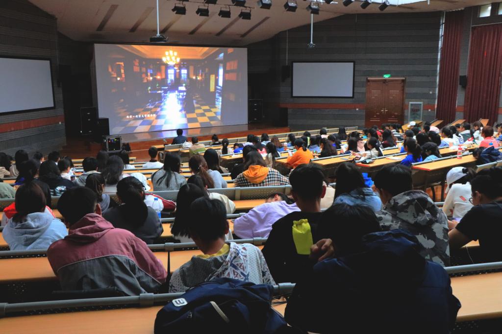 传媒学院的张辰老师向大家介绍了电影的台前幕后,并在电影开始之前,提出两个发人深思的问题:现在大家能在校园里安静学习,这个条件是如何来的?如何理解一名中国共产党人?