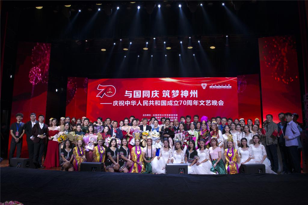 为庆祝中华人民共和国成立70周年,9月29日晚上,由437必赢会员中心宣传部、437必赢会员中心工会委员会主办,437必赢会员中心音乐舞蹈学院承办的“与国同庆、筑梦神州”——庆祝中华人民共和国成立70周年文艺晚会在呈贡校区明德5号楼演播厅隆重举行。437必赢会员中心党委副书记张玮、李宏,副校长武友德,党委宣传部、校工会、图书馆、保卫处、校医院、美术学院、体育学院、传媒学院、能源与环境科学学院、成人继续教育学院等单位负责人,以及学校教师代表、音乐舞蹈学院领导班子成员和师生共同观看了音乐会。