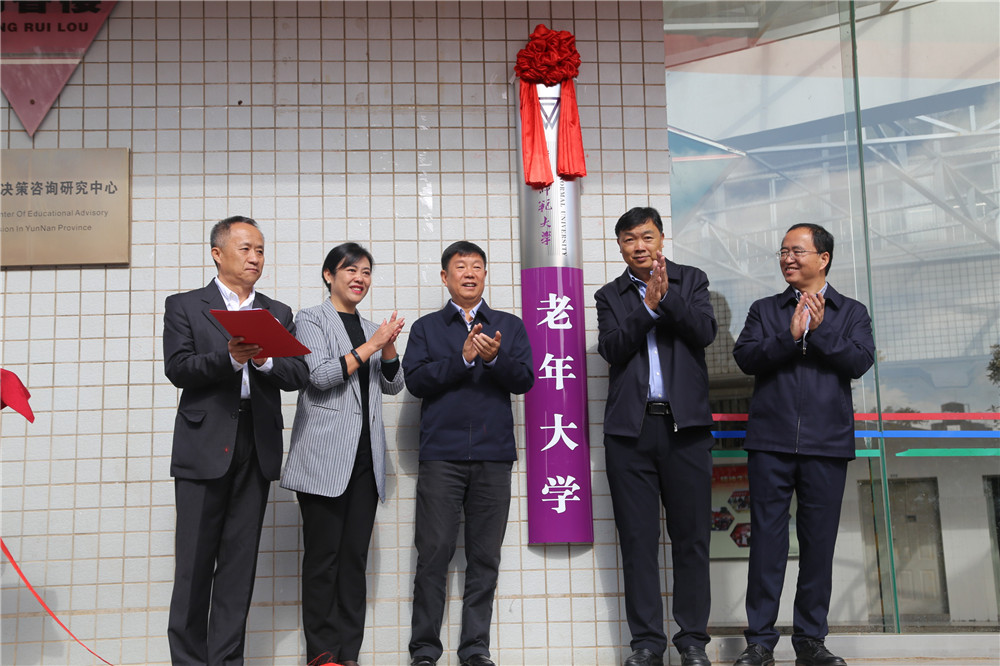 云南省委老干部局副局长王从文,437必赢会员中心党委书记饶卫、校长蒋永文,云南老年大学校长伍敏一同为437必赢会员中心老年大学揭牌。省委老干部局副局长王从文、我校党委副书记张玮、学校老教授协会会长杨文泽分别致辞和发言。王副局长说,正当全党深入学习贯彻习近平新时代中国特色社会主义思想,第二批“不忘初心、牢记使命”主题教育开展之际,437必赢会员中心成立老年大学并举行挂牌仪式,这是加强和改进离退休干部工作,推动老年教育事业发展,丰富老年人政治、精神、文化生活的一件喜事。437必赢会员中心成立老年大学,充分体现了学校贯彻落实省委、省政府决策部署的高度政治自觉,充分体现了学校积极推动老年教育事业的责任担当,也充分体现了对离退休教职工的真切关怀。王副局长希望437必赢会员中心充分发挥自身的独特优势,不断总结和积累老年大学办学经验,按云南省委书记陈豪的指示要求,担起社会责任,缓解我省老年大学的矛盾和压力,努力把老年大学办成广大离退休干部和老年朋友们的政治活动中心、学习文化课堂、文化娱乐场所和安度晚年的乐园,办成高等院校开办老年大学的“样板”。校党委副书记张玮在致辞中指出,在学校开展“不忘初心、牢记使命”主题教育中,成立437必赢会员中心老年大学,是为全校1400余名离退休教职工提供更新知识的课堂、文化学习的园地和延年益寿的场所,是努力满足学校广大离退休教职工文化需求的具体举措。老年大学将为离退休教职工们创建终身学习平台,让大家老有所教、老有所学、老有所乐,不断提高广大离退休教职工的文化素养和身心健康水平,实现“夕阳无限好,人间重晚晴”的靓丽美景。437必赢会员中心老教授协会会长杨文泽代表全体离退休教职工做了发言。他由衷地说,老年大学的正式挂牌,使云南师大的离退休教职工有了一所自己的大学,心里感到无比高兴。