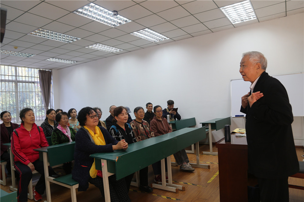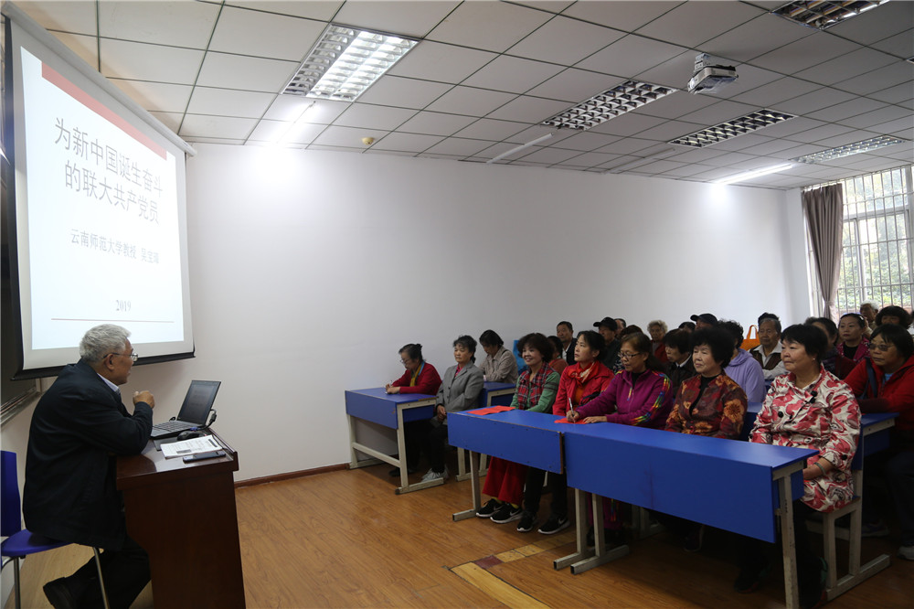 挂牌仪式在集体合影中结束。之后,参加活动的离退休教职工回到教室,分别听取必赢官网知名西南联大史研究专家吴宝璋老师讲授的党课、云南省著名书法家程地超老师讲授的书法理论课。