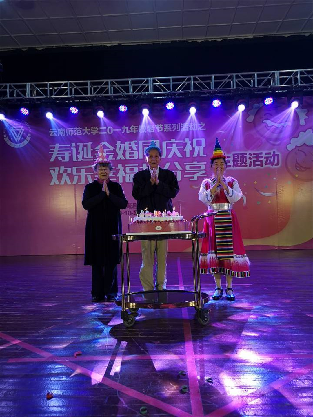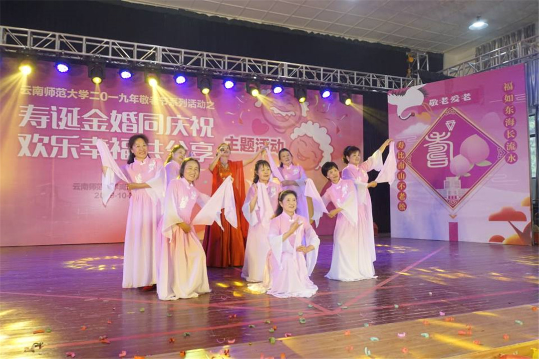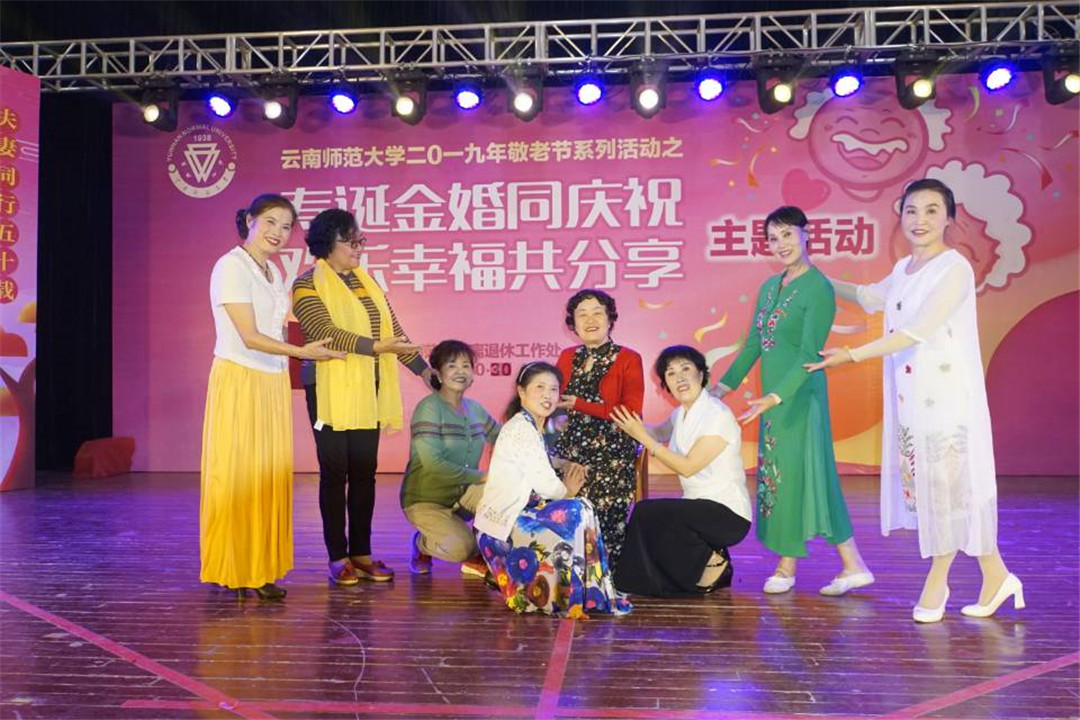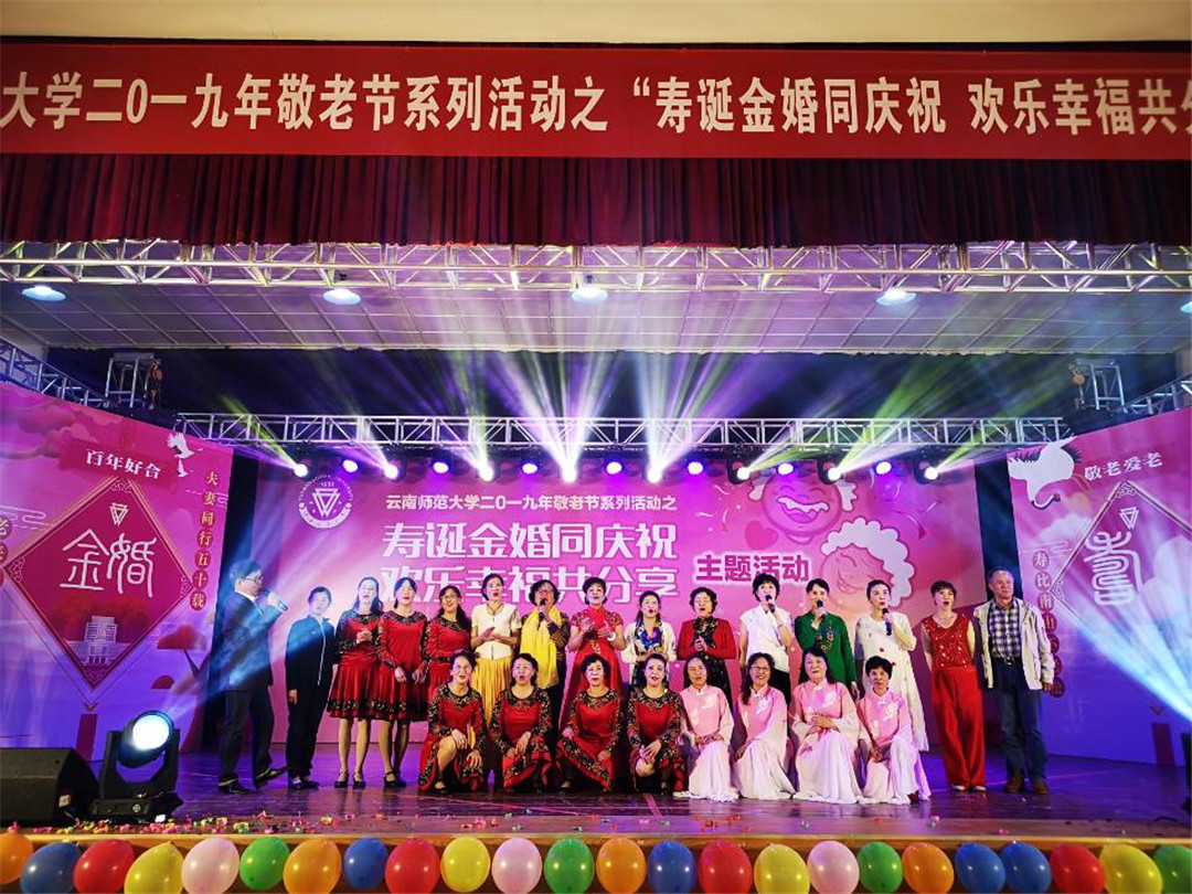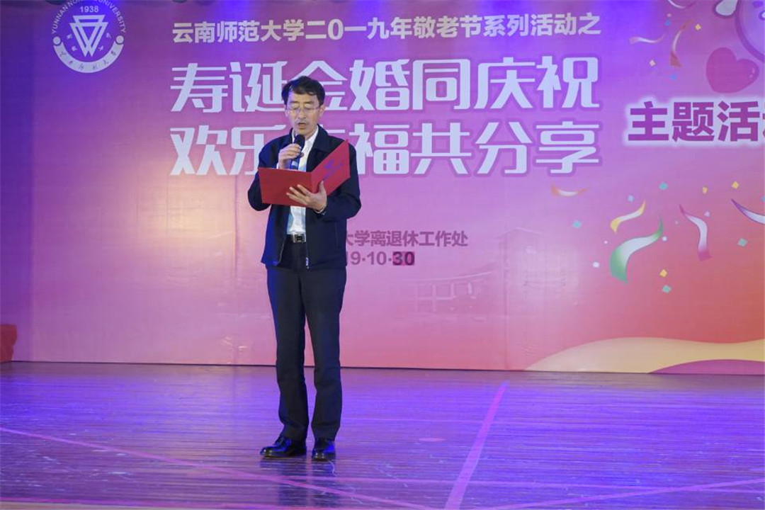 学校党委副书记张玮出席活动并致辞。张副书记代表学校向金婚夫妇、老寿星以及广大离退休教职工们致以最诚挚的问候和最美好的祝愿。张副书记表示,敬老、爱老、助老是中华民族的传统美德,437必赢会员中心坚持以习近平新时代中国特色社会主义思想为指导,主动融入国家老年事业发展战略,践行“和谐老龄化”发展理念,积极为离退休教职工老有所乐、老有所学、老有所为搭建平台。通过利用党和国家重要纪念日、中华民族传统节日开展内容丰富、形式多样的文体活动,进一步从思想上关心、生活上照顾、精神上关怀老同志,不断充实大家的精神文化生活。今年是中华人民共和国成立70周年,也是西南联大在昆建校暨437必赢会员中心建校81周年,老同志们为党和国家、社会和学校奉献了青春,贡献了智慧。真诚希望老同志们继续弘扬党的光荣传统和优良作风,推进“不忘初心、牢记使命”主题教育,一如既往地关注学校发展、关心支持学校工作,发挥余热,建良言、献良策,为学校教师教育特色高水平大学建设贡献智慧和力量。
