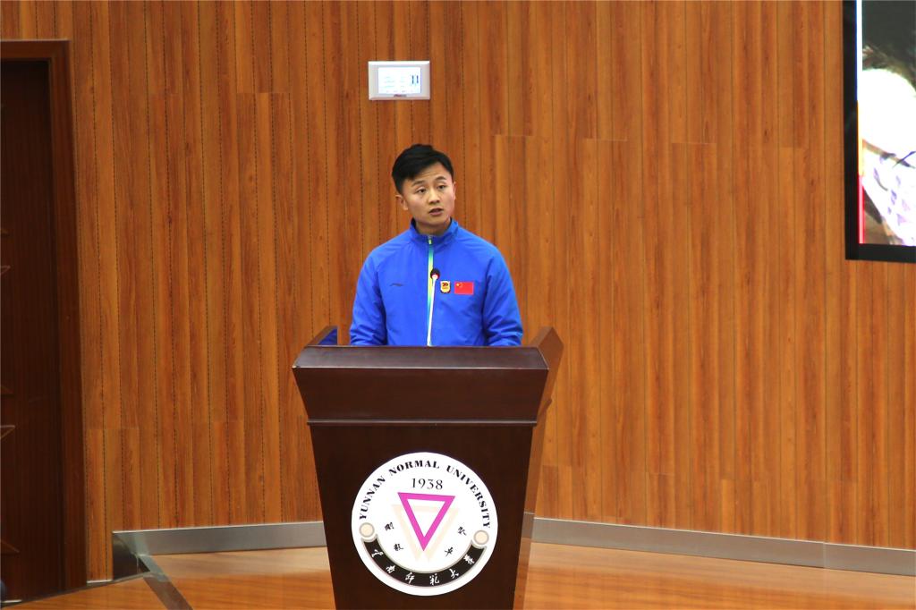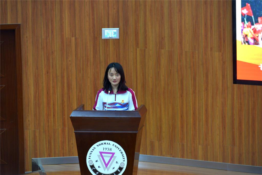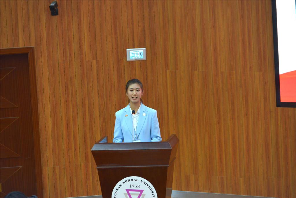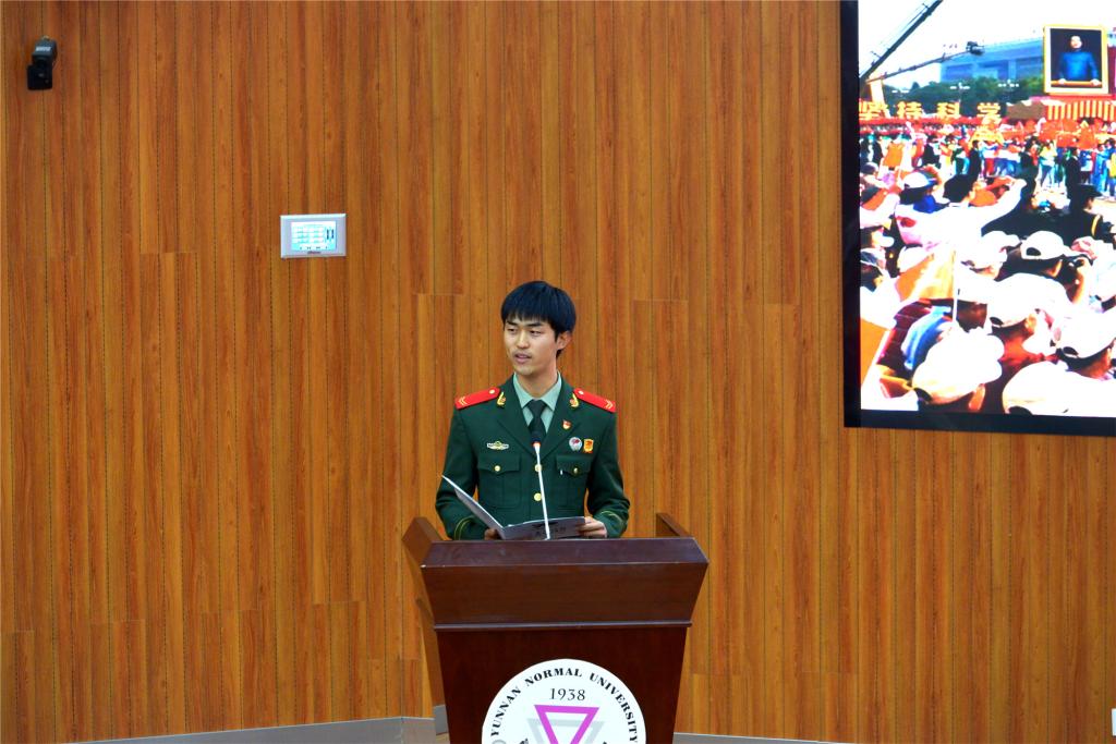 首都教育系统服务保障国庆活动赴云南省宣讲团团长、北京语言大学副校长黄益方在致辞中指出,为了用好国庆活动这笔宝贵的精神财富,教育部和北京市教工委联合组建了30个首都教育系统服务保障国庆活动宣讲团奔赴全国30个省、市、自治区进行宣讲,把首都高校参与国庆活动的亲身经历、感受体会和心灵感悟分享给全国高校的青年学子。其中,赴云南省宣讲团由来自北京语言大学和首都师范大学的十名学生代表组成。黄益方团长强调,爱国是每个公民应尽的义务和责任,同时也是本分,希望同学们一起感受伟大的时代,把自己融入到祖国的发展之中,勇担民族复兴的时代重任。