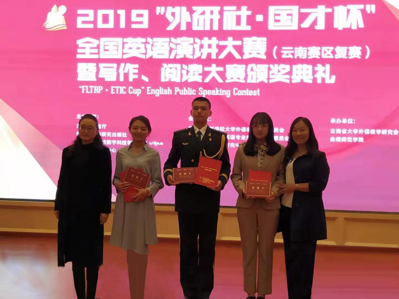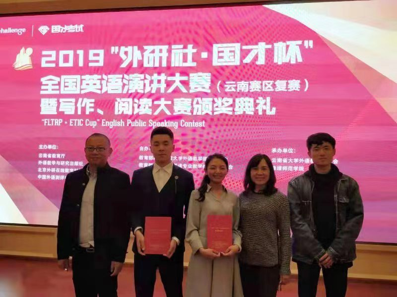 11月1日,2019年“外研社杯”全国英语演讲大赛云南赛区比赛在曲靖师范学院举行。必赢官网外国语学院2018级研究生郭思雨同学荣获特等奖,赢得了代表云南省各高校到北京参加全国决赛的资格;旅地学院2018级本科生谭一同学荣获一等奖。