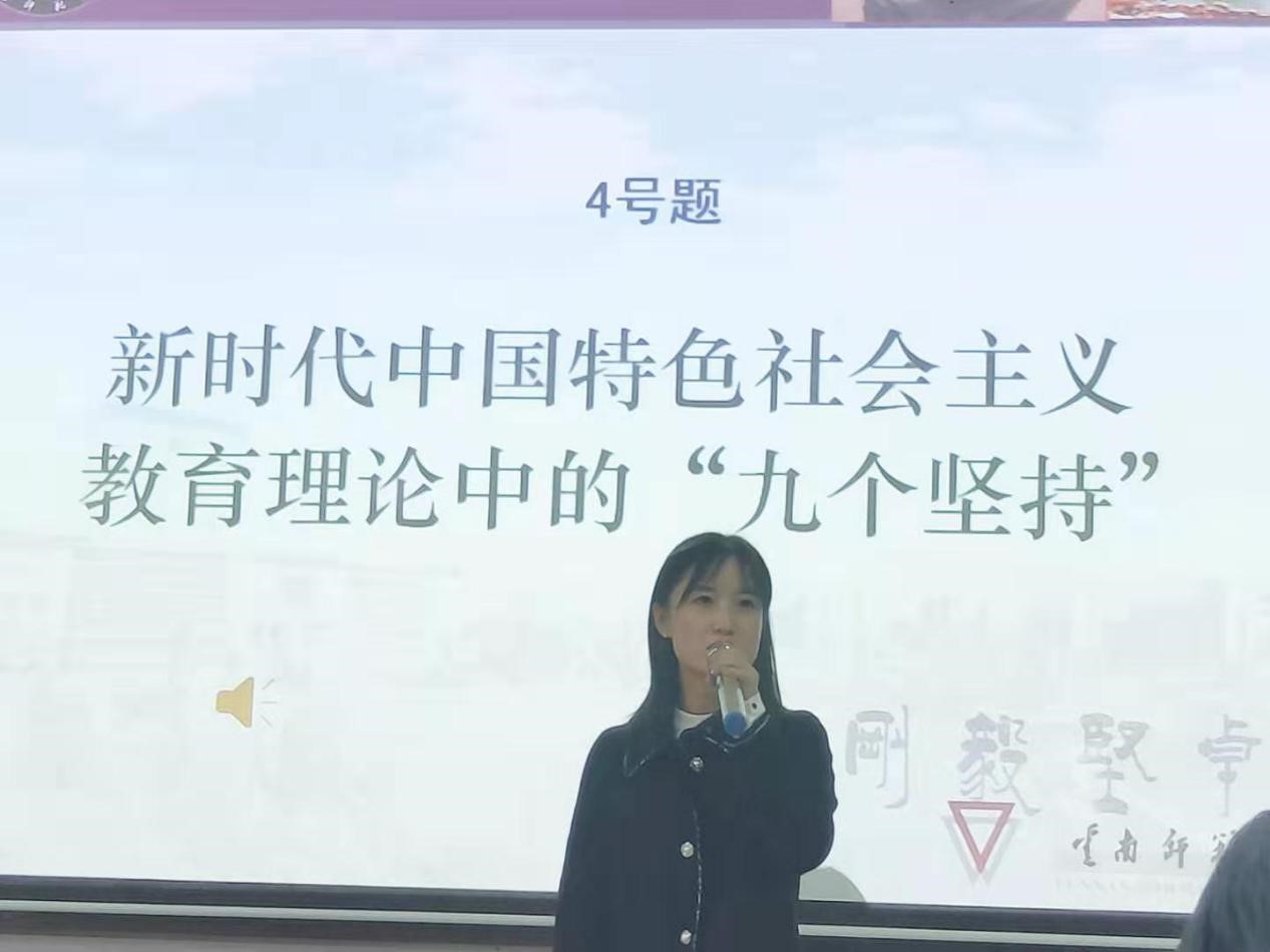 比赛分为两个阶段,经过第一阶段笔试(基础知识测试、案例分析、网文或公文写作)、主题班会两个环节的选拔,共有10名辅导员进入了第二阶段的比赛。第二阶段包括谈心谈话和理论宣讲两个环节,谈心谈话采取情景再现的方式开展,考察辅导员对相关理论政策、学生特征、学生成长成才规律的了解把握及对问题的解决能力和对学生的教育引导能力。理论宣讲着重考察辅导员对马克思主义理论、习近平新时代中国特色社会主义思想、党的十九大精神等的学习宣传阐释能力。