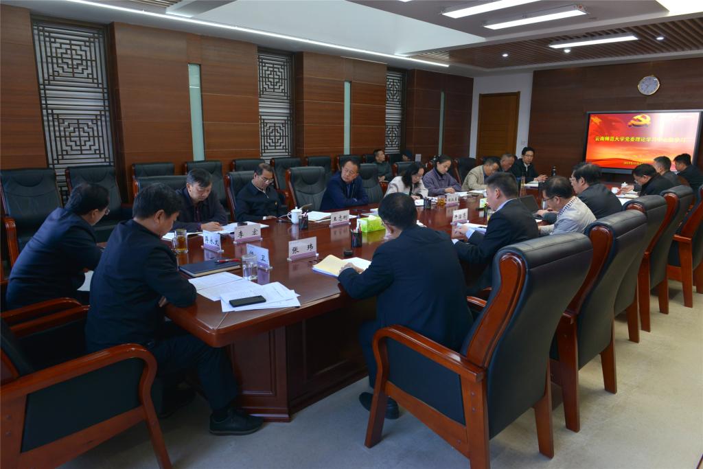 本次学习的主题是:深入学习中国共产党第十九届中央委员会第四次全体会议精神;深入学习中共中央办公厅 国务院办公厅《关于深化新时代学校思想政治理论课改革创新的若干意见》;深入学习秦光荣严重违纪违法案件相关会议和文件材料,深刻认识汲取秦光荣严重违纪违法深刻教训、全面净化云南政治生态的重要性紧迫性,发扬斗争精神,以案为鉴、以案促改,坚决肃清秦光荣等流毒影响。专题学习由校党委书记饶卫主持。