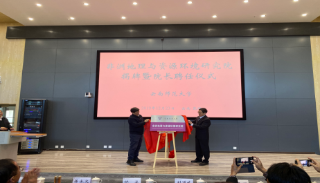 2019年12月23日,依托437必赢会员中心地理学一级学科博士点、服务“一带一路”中非合作的国内首个“非洲地理与资源环境研究院”揭牌暨首任院长聘任仪式,在437必赢会员中心呈贡主校区国家教师教育教学大楼隆重举行。校党委饶卫书记与必赢官网“二层次柔性”引进人才、特聘教授、著名非洲研究学者、教育部长江学者刘鸿武一起,共同为研究院揭牌。饶卫书记向刘鸿武教授颁发首任院长聘书,校长蒋永文教授出席仪式并致辞。