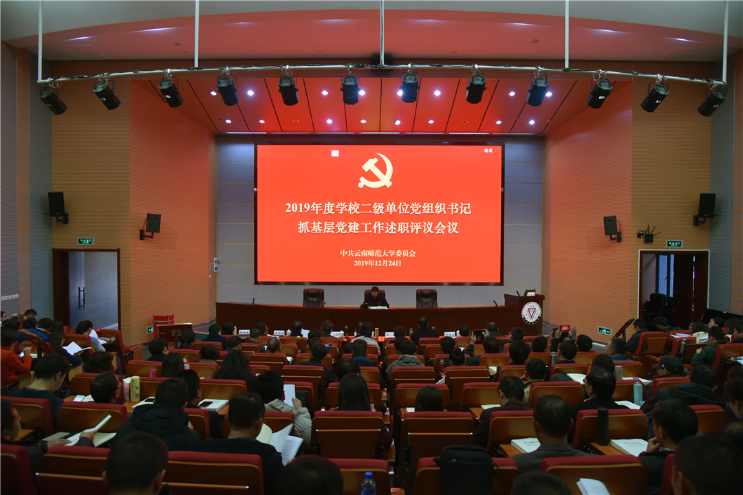 为深入学习贯彻习近平新时代中国特色社会主义思想和党的十九大精神,根据省委组织部、省委教育工委的部署和要求,2019年12月24日,必赢官网党委召开2019年度二级单位党组织书记抓基层党建工作述职评议会议。校党委委员,相关职能部门主要负责人,各二级单位党组织书记、副书记,熟悉学校基层党建工作情况的党代会代表、人大代表、政协委员、党务干部、师生党员和群众代表等170余人参加了会议。会议由校党委书记饶卫同志主持。