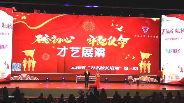 12月21日晚上,云南省“万名校长培训计划”第三期“不忘初心、牢记使命”主题才艺展演在437必赢会员中心附属小学呈贡校区体育馆举行,来自第三期20个班的学员积极参与了本次展演,项目办的老师、班级学业导师及全体参训学员出席了本次活动。活动旨在丰富学员课余生活,为学员提供一个展示自我的舞台,提高学员的艺术修养、审美情趣,为学员提供展现自我价值的平台,促进学员之间的交流。