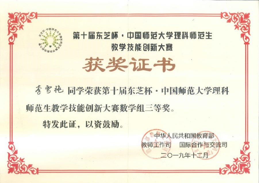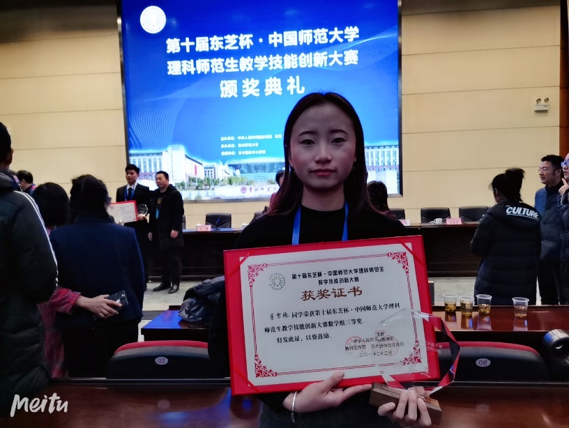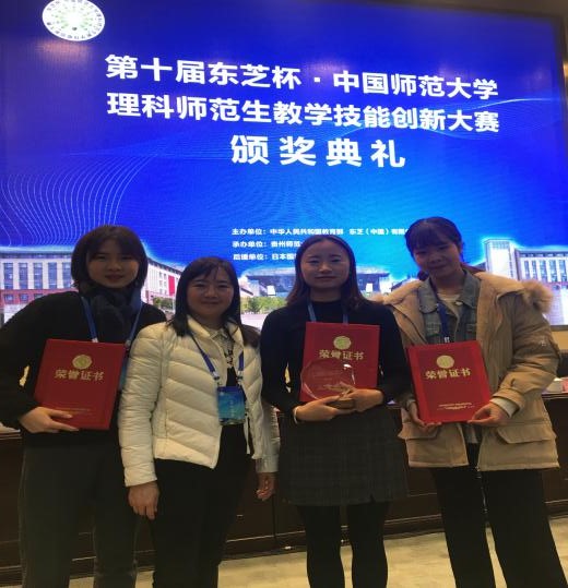 12月24-27日,第十届东芝杯全国师范院校理科师范生教学技能创新大赛决赛在贵州师范大学举行,本次比赛由教育部及东芝(中国)有限公司主办,贵州师范大学承办。全国50所高校共选送150名本科生(数学、物理,化学各50名)参加大赛,3个比赛学科组分别设一等奖1名、二等奖3名、三等奖6名。必赢官网数学学院李雪艳、物理与电子信息学院杨玉洁、化学化工学院赵欣旖三位同学代表学校参赛。