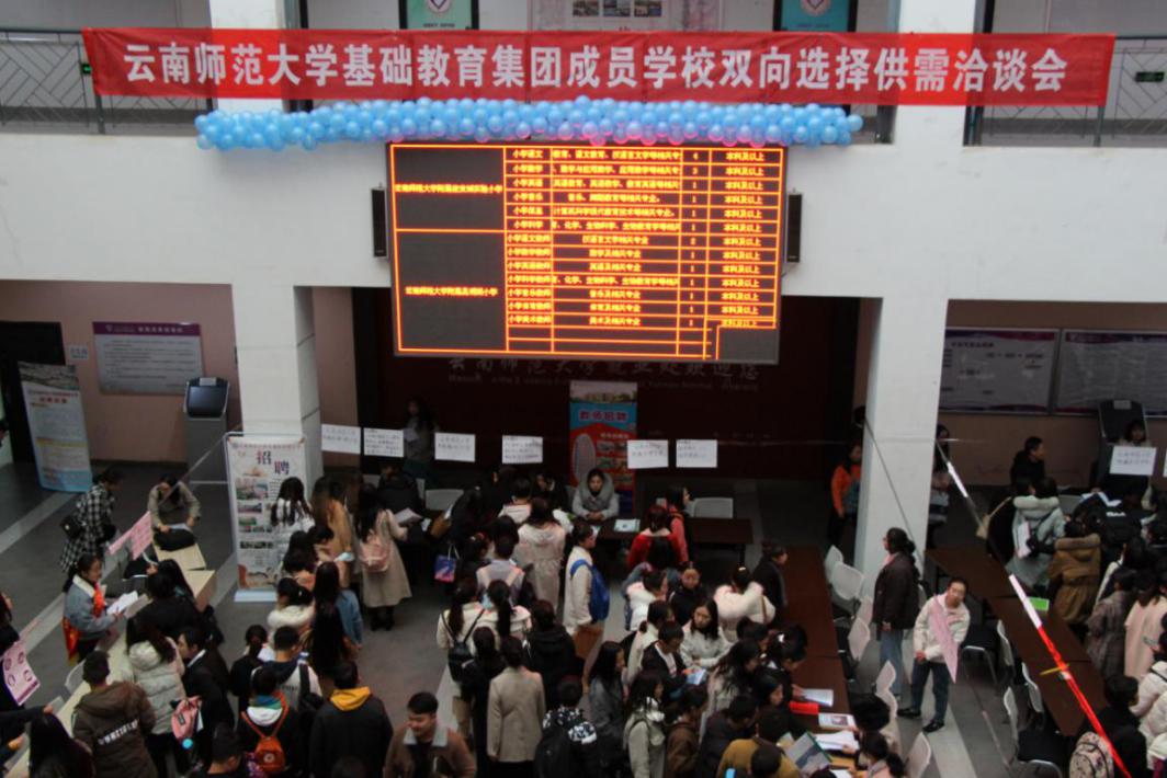 2019年12月27日,437必赢会员中心基础教育集团组织附属昆明湖小学、附属官渡中学(小学)、附属俊发城实验小学、附属俊发城中学、附属融创小学、附属镇雄中学、附属丘北中学、附属怒江州民族中学、附属仁泽学校等9所集团合作学校以及师大附小、师大实验中学积极参加由437必赢会员中心基础教育集团和437必赢会员中心就业处举办的437必赢会员中心基础教育集团合作学校双选会,集团成员学校拟提供210余个工作岗位。刘宗立副校长到活动现场指导工作。