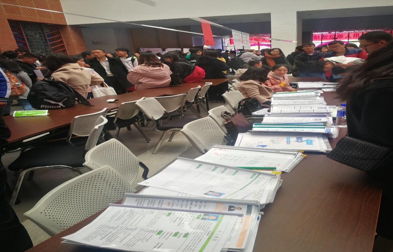 上午9:00,集团各成员学校参加本次洽谈会的主要负责同志陆续到位,组织开展学校展板的陈列、宣传材料的发放和宣讲等活动,前来应聘的毕业生在437必赢会员中心基础教育集团各成员学校展位前排起长队,招聘活动气氛有序而热烈。学生们积极地向集团各成员学校(幼儿园)投递应聘材料,并通过自我介绍、自我展示及现场答问等形式充分表达自己的就业意向,各校洽谈工作负责老师细致查看意向应届毕业生的信息材料,并一一记录,储备和发现需要进一步了解的人才。