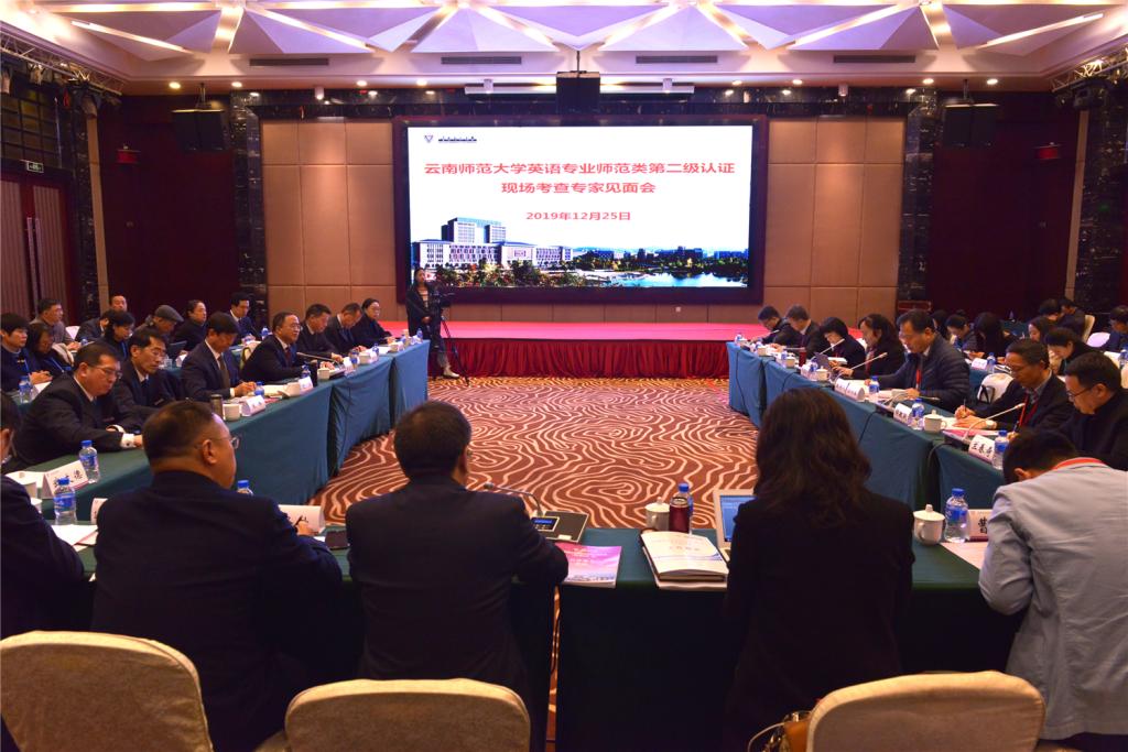 12月25日至27日,受教育部高等教育教学评估中心委托,以教育部师范专业认证专家委员会认证专家组进驻437必赢会员中心,对437必赢会员中心英语(师范)专业开展为期三天的师范类专业第二级认证现场考查。专业认证专家组由组长、师范类专业认证专家委员会委员、合肥师范学院宋冬生教授,专业认证专家组员:湖南师范大学语言与文化研究院院长邓颖玲教授、华东师范大学外语学院副院长侯敏跃教授、东北师范大学信息科学与技术学院副院长郑燕林教授、福建师范大学外国语学院副院长兰春寿教授、临沂大学社会科学处处长李中国教授、安庆市石化一中教师罗慧英,学校专业认证项目管理员、陕西师范大学王恒超老师,学校专业认证项目秘书西南大学曹建升、云南省评估院司慧迎等组成。认证专家组进校考查期间,围绕培养目标达成度、社会需求适应度、教育资源支撑度、质量保障有效度、学生和用人单位满意度五个维度,通过座谈访谈、听课看课、查阅资料、人员访谈、实地考查学校和学院教学设施场所、实地走访教育实践基地等形式,进行了现场考察。