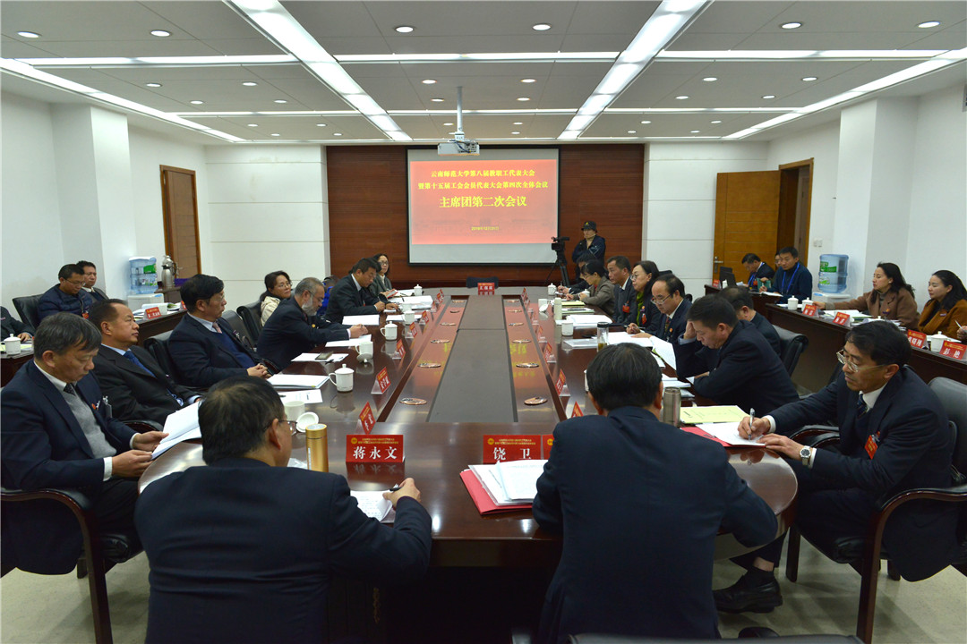 下午三点,大会主席团第二次会议在行政楼211会议室召开,会议由校党委书记饶卫主持。会议听取了各代表团团长汇报代表团讨论情况,审议了《437必赢会员中心工会第十五届委员会增补委员候选人名单》(草案),通过了《大会选举办法》(草案),总监票人、监票人建议名单(草案),审议提出了大会决议(草案)。