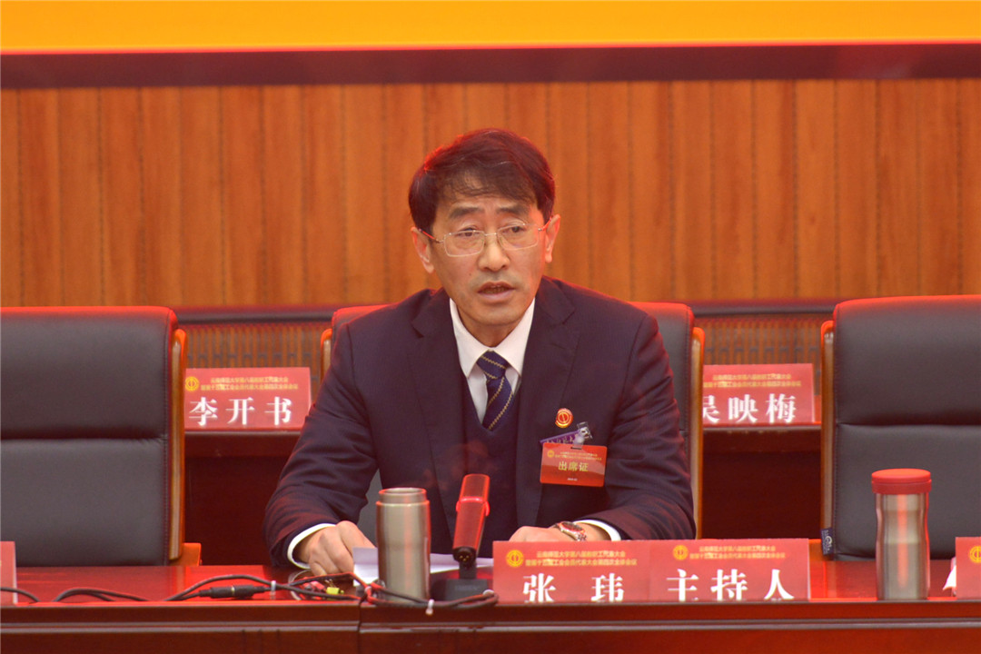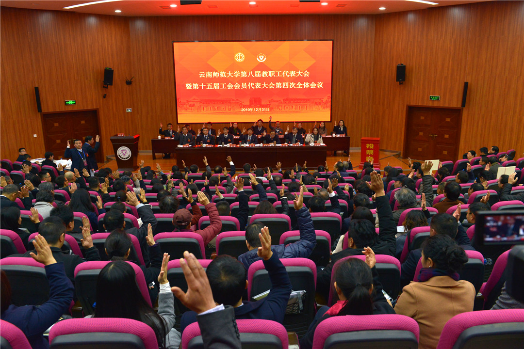 校党委饶卫书记作大会总结讲话。饶书记指出,此次大会的召开充分体现了广大教职工“当好主人翁、建功新时代”,积极投身学校改革建设发展事业的良好精神面貌,实现了统一思想、振奋精神、建言献策、深化改革的目标,为学校加快推进教师教育为特色的高水平大学建设营造了良好氛围。饶书记就进一步加强党的政治建设,确保各项改革平稳有序推进和落实提出了四点要求:一是要贯彻新时代党的建设总要求,始终把政治建设摆在首位,推动党的各方面建设全面进步全面过硬;二是要切实提高政治站位,深入学习贯彻党的十九届四中全会、省委十届九次全会精神;三是要加强对学分制改革、岗位聘用制改革工作的领导,确保改革目标实现;四是各级工会、教代会要不忘初心、牢记使命,不断提升履职能力。饶书记号召,全校广大教职工要紧密团结在以习近平同志为核心的党中央周围,始终不忘党的初心、永远牢记党的使命,大力弘扬“跨越发展、争创一流;比学赶超、奋勇争先”精神,在学校党委的领导下,弘扬传统、改革创新、勇于担当,加快推进教师教育为特色的高水平大学建设,不断提升服务云南“三个定位”和打好世界一流“三张牌”的能力,为实现云南教育现代化、全面建成小康社会做出新的更大贡献。437必赢会员中心第八届教职工代表大会暨第十五届工会会员代表大会第四次全体会议在雄壮的《国际歌》声中圆满落下帷幕。