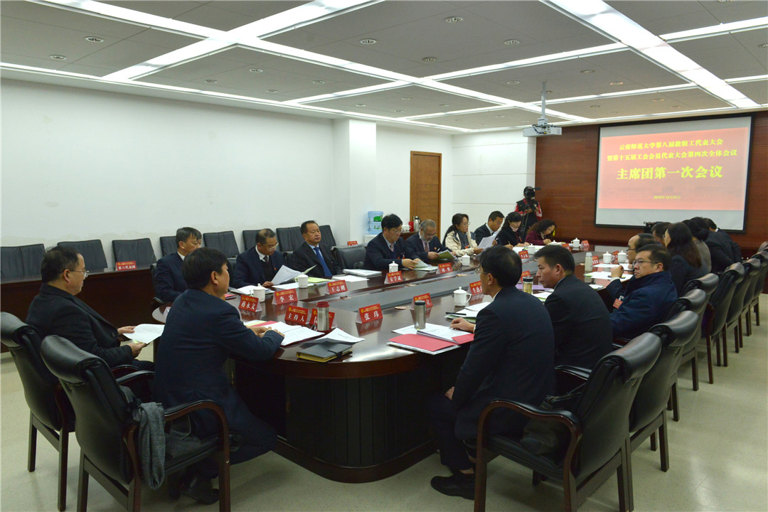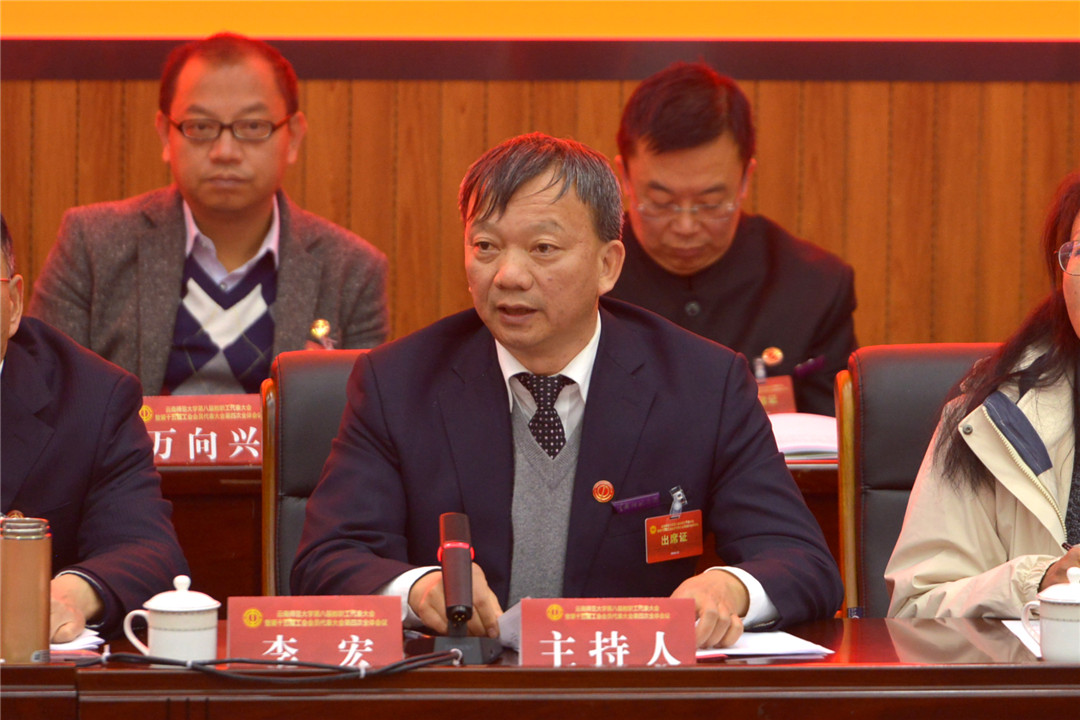 2019年12月31日,437必赢会员中心第八届教职工代表大会暨第十五届工会会员代表大会第四次全体会议第一次全体代表大会在呈贡主校区汇学2幢101报告厅顺利召开。校党委书记饶卫,校长蒋永文,校党委副书记张玮、李宏,副校长刘宗立,纪委书记王志刚,副校长牛治亮、安学斌、武友德、刘坚、郝淑美等校领导,以及各学院、部门正式代表172人、列席代表41人、特邀代表5人共同参加此次会议。会议由校党委副书记张玮主持。