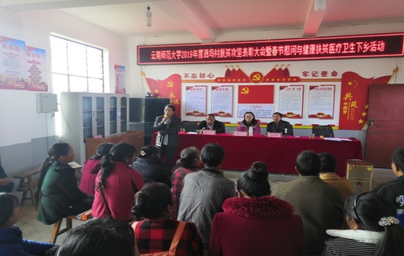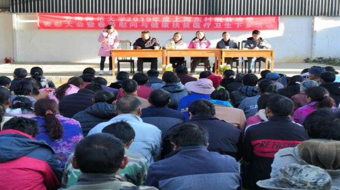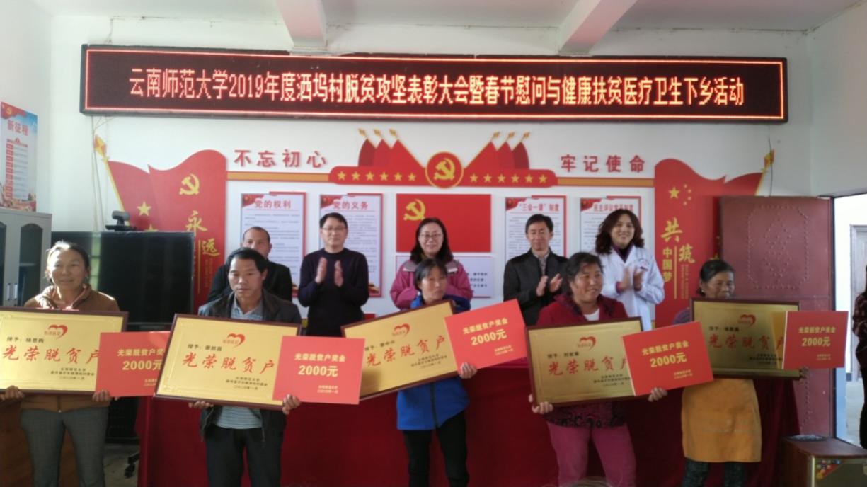 在新春佳节来临之际,为激发广大群众及建档立卡贫困户内生发展动力, 2020年1月6日至 7日,437必赢会员中心分别在挂钩扶贫的梁河县洒坞村和上河东村召开了2019年度脱贫攻坚表彰大会。郝淑美副校长出席会议,对2019年度涌现出的脱贫攻坚优秀脱贫户进行表彰,并对洒坞村和上河东村的建档立卡户进行春节慰问。