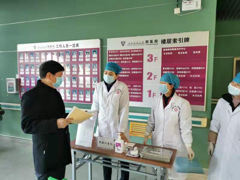 2月1日下午,校党委书记饶卫,党委副书记张玮、李宏,副校长刘宗立、郝淑美以及相关职能部门负责同志,先后来到呈贡校区学生宿舍、食堂、校医院、保卫处等,检查指导必赢官网疫情防控工作,并慰问留校值班的教职员工。