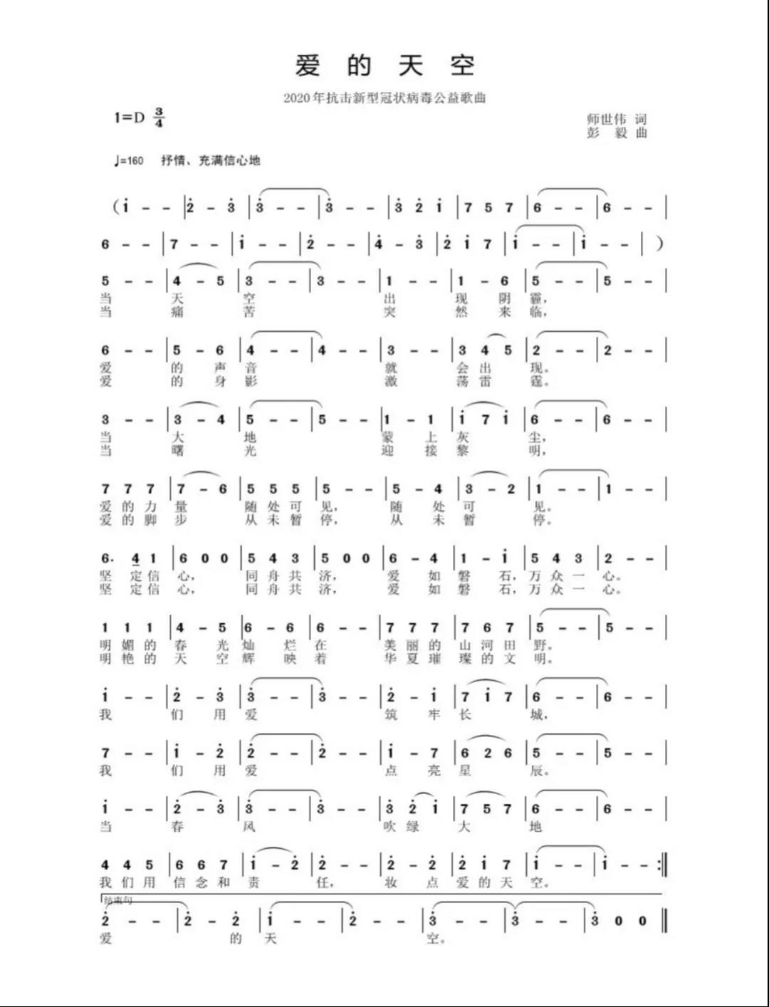 437必赢会员中心附属小学师世伟老师作词,温明通老师、魏郁颖同学演唱的新型冠状病毒感染的肺炎疫情抗疫公益歌曲《爱的天空》近日发布,引起了社会上的广泛好评,并先后被《学习强国》《云南通》《云南日报》客户端、云南卫视《七彩云端》、云广文化传媒、云南文艺网、昆明电台等10余家主流媒体转发,被“云南广播电视公益广告作品——疫情专栏”收录,供全省各电视台自由选择播出。