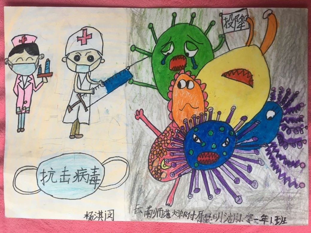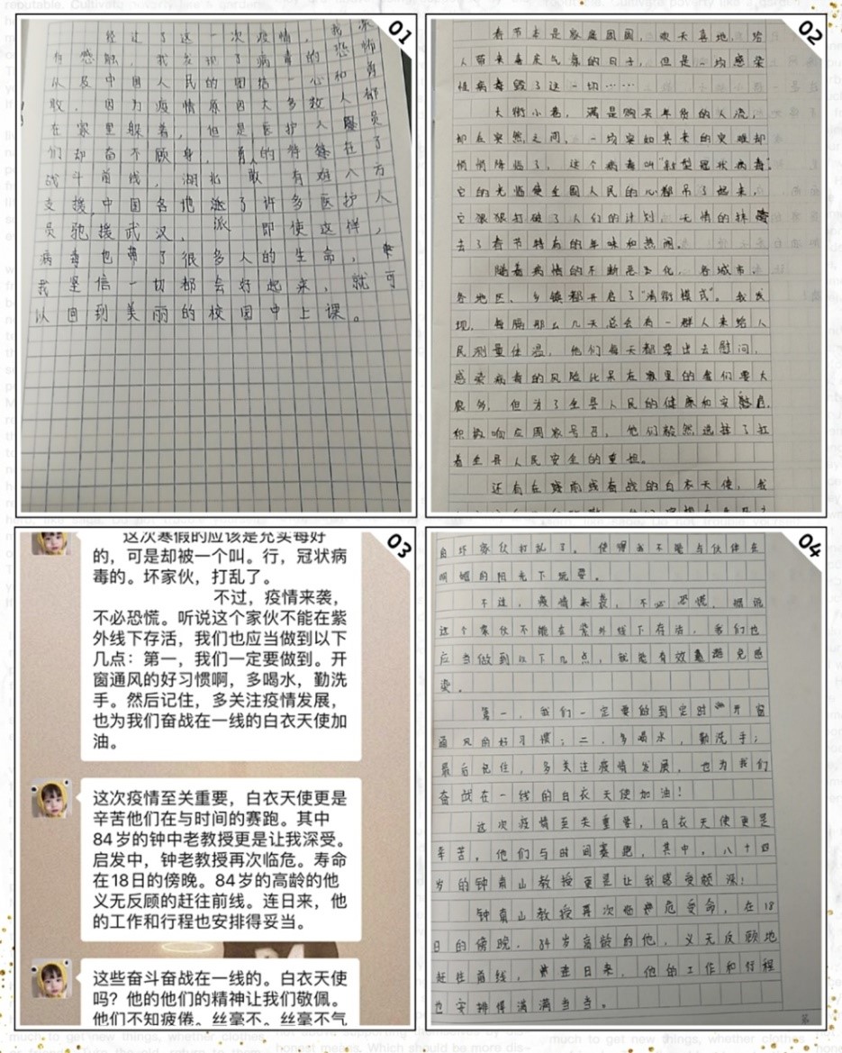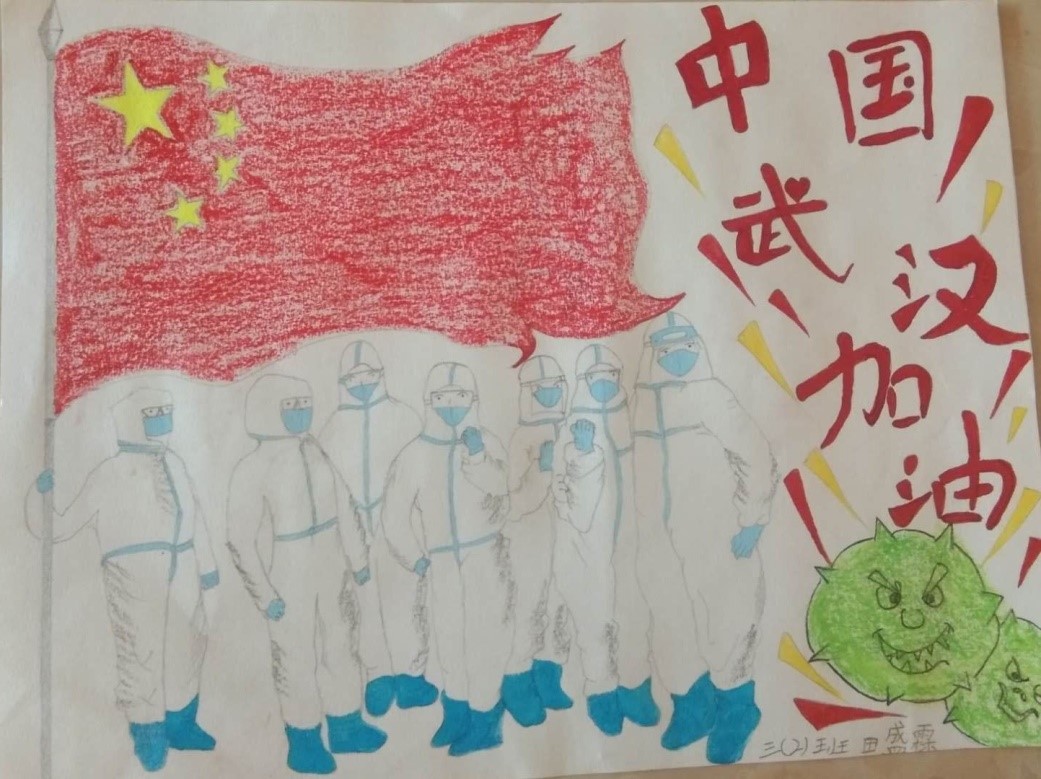 病毒无情,人有情。学校通过微信公众号等多种形式对学生进行“抗疫”教育,鼓励学生了解抗击疫情的最新动态和涌现出的先进事迹,用多种方式表达自己对前方抗击疫情的英雄们的敬意,感谢和鼓舞正在与病毒做斗争的人们。孩子们在爸爸妈妈的协助下通过手抄报、绘画、作文等方式为抗疫工作声援,为武汉加油,为中国加油!众志成城,“童”心抗“疫”!孩子们用手中的画笔,表达了战胜病毒的信心,为武汉加油,为中国加油!