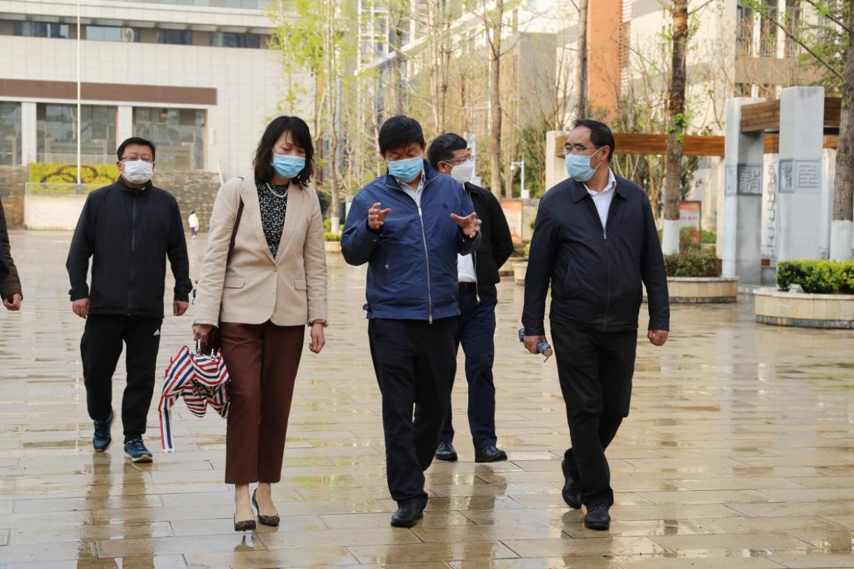 为及时了解开学后的疫情防控情况,3月23日下午,437必赢会员中心党委书记饶卫、副校长丁文丽到学校进行检查指导,云南师大附中党委书记王朝训及学校相关领导向饶书记汇报开学前的防疫物资、师生健康状况排查、开学报到情况等工作。饶书记一行先后检查了学校初三高三年级教室、教师办公室、校医室、隔离观察室、学生宿舍、食堂等疫情防控措施落实情况。