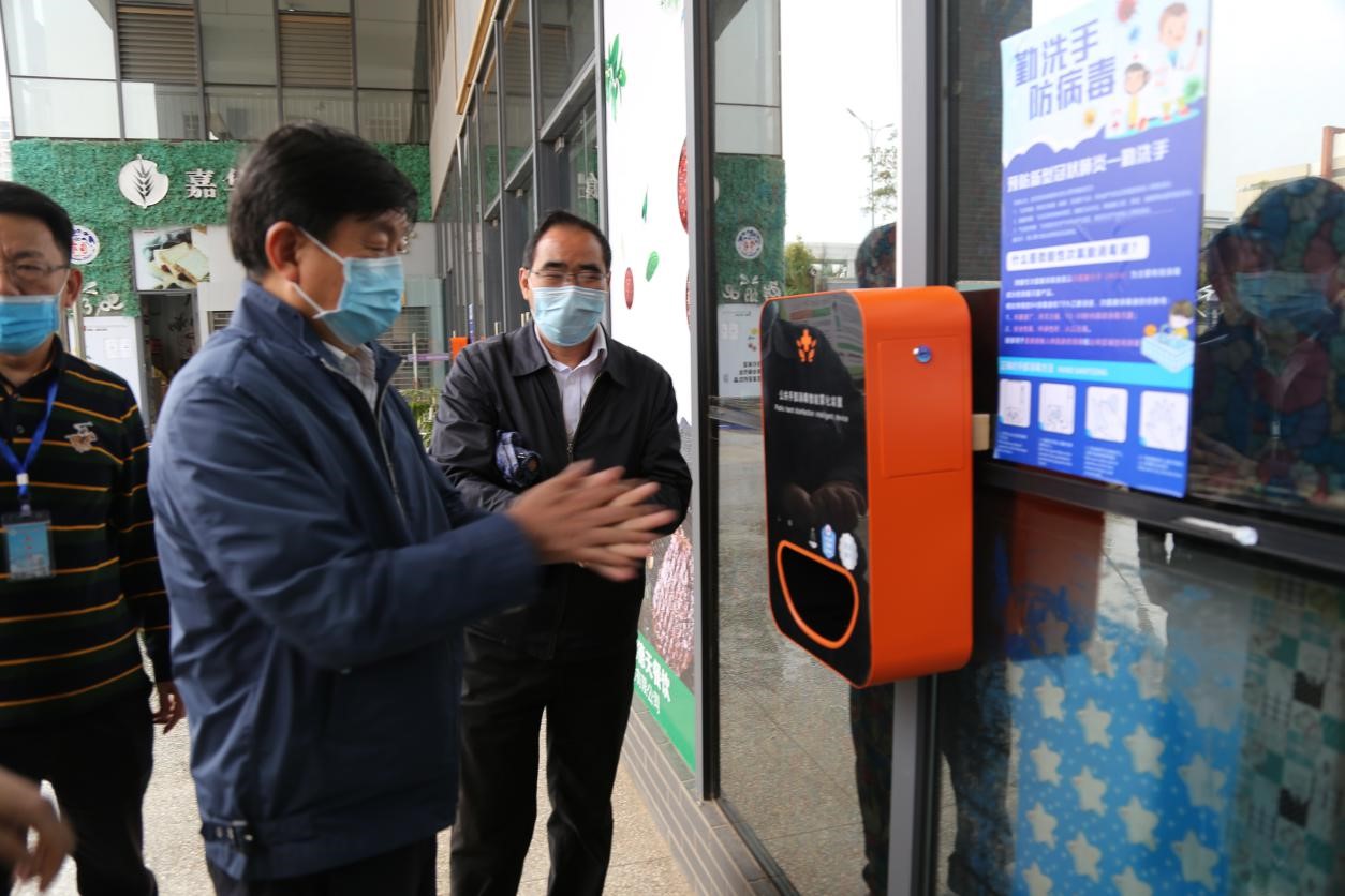 在学校食堂,饶书记体验了学校为师生配备的公共手部消毒智能雾化装置,他肯定了学校的做法,尽力为师生的个人卫生防护提供便利。他询问了食堂员工为学生的供餐方式,对学校采用快餐形式为学生供餐的方法给予了极大肯定,这样的供餐形式减少了学生取餐时间,避免人员聚集。