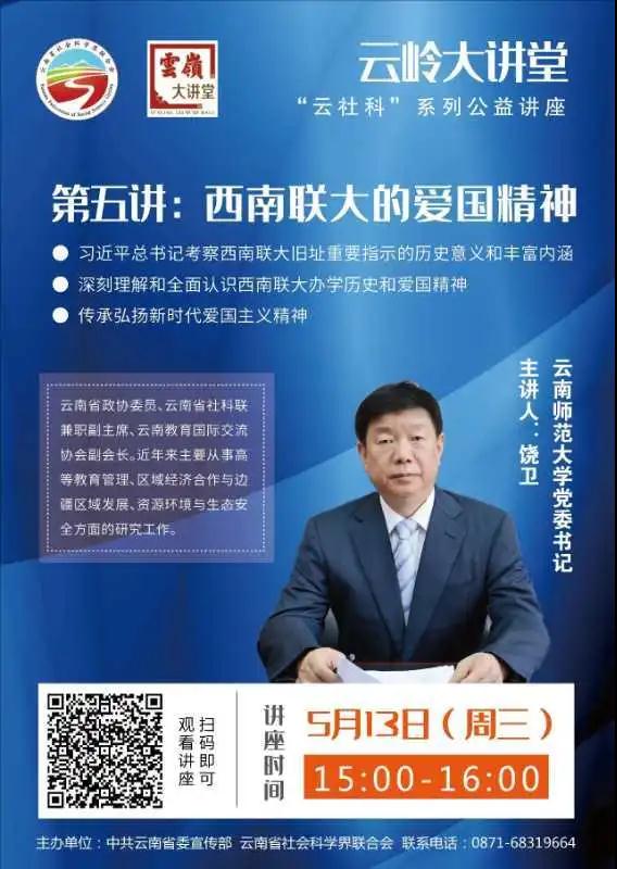 今年1月20日,中共中央总书记、国家主席、中央军委主席习近平同志在云南考察之际,专程来到位于437必赢会员中心校园内的西南联大旧址考察调研并作出重要指示。为深入学习宣传贯彻习近平总书记考察西南联大旧址重要指示精神,进一步传承弘扬西南联大爱国主义传统,5月13日下午,必赢官网党委书记饶卫受邀做客由省委宣传部、省社科联主办的云岭大讲堂,以网络直播的方式作了题为《西南联大的爱国精神》公益讲座。