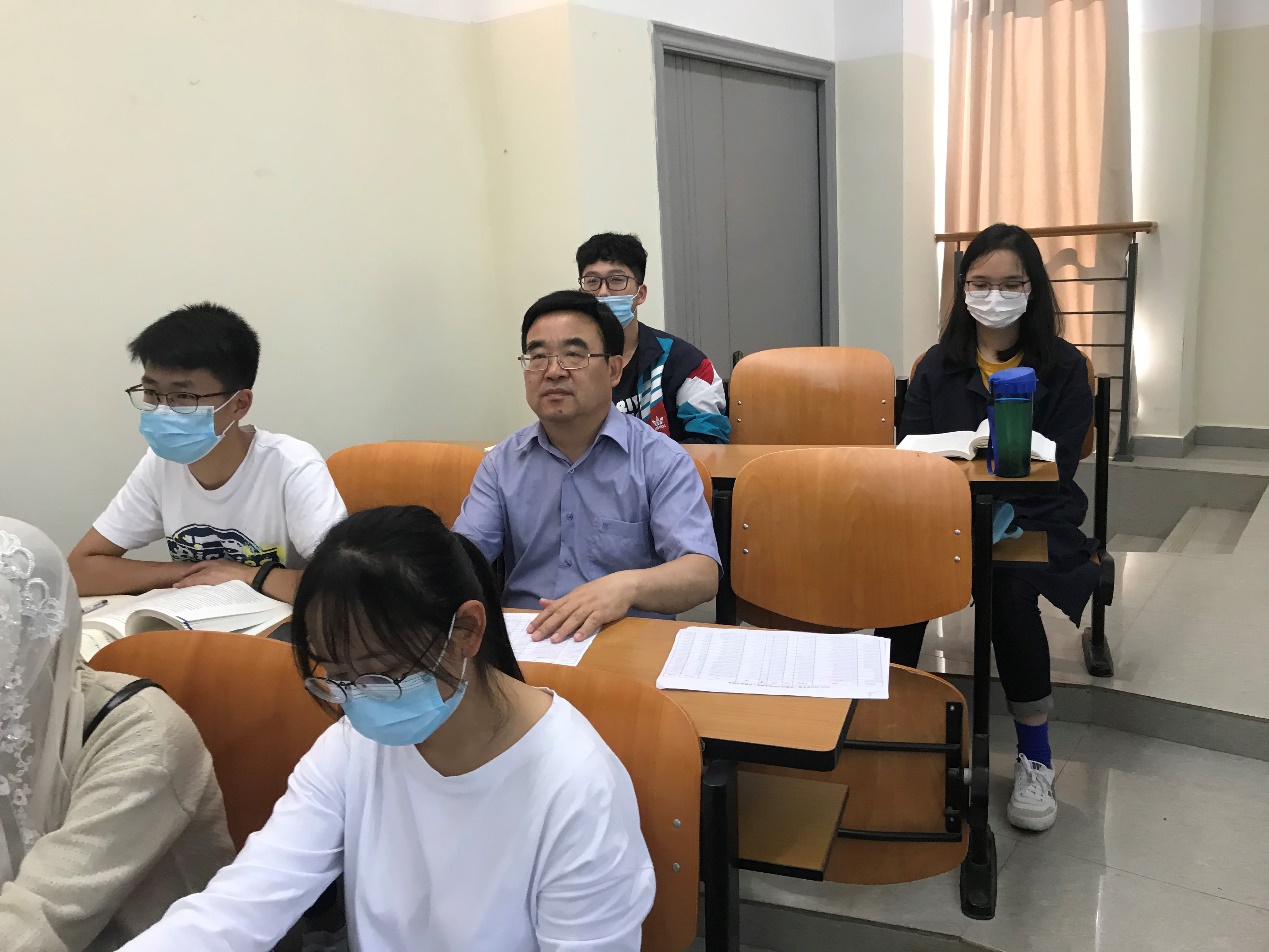 武友德副校长充分肯定了复课各项准备工作,认真了解课程安排、教师到位授课情况、学生出勤情况、学生学习态度和学习状况,对教室、教材、教学设备设施等准备情况进行了细致检查,勉励师生继续做好疫情防控不放松,以饱满的热情投入教学,衔接线上线下教学,补齐知识短板,努力提高教学质量。