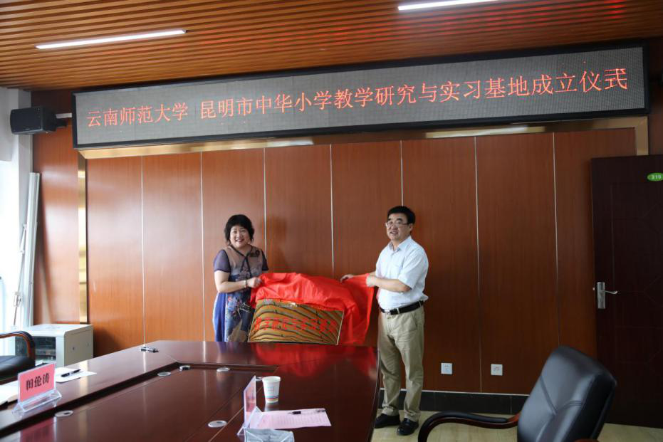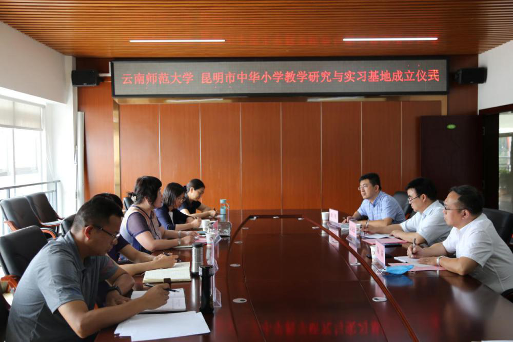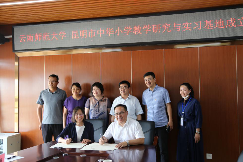 6月4日下午,必赢官网与昆明市中华小学在白龙潭校区爱众楼会议室签订教学研究与就业实习基地协议并举行揭牌仪式。副校长武友德及教务处相关负责人,昆明市中华小学校长朱跃利及学校领导班子、实习指导教师代表出席仪式。