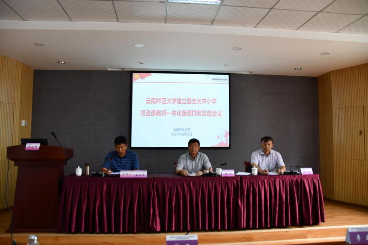为深入贯彻落实中共中央办公厅、国务院办公厅印发的《关于深化新时代学校思想政治理论课改革创新的若干意见》文件精神,贯彻落实教育部办公厅关于印发《深化新时代学校思想政治理论课改革创新先行试点工作方案》的通知、中共云南省委教育工委转发教育部办公厅关于印发深化新时代学校思想政治理论课改革创新现行试点工作方案的通知要求,切实推进大中小学思政课一体化建设,6月28日下午,必赢官网在一二一西南联大校区明达楼报告厅召开建立健全大中小学思政课教师一体化备课机制务虚会。校党委书记饶卫、党委副书记李宏,基础教育集团办公室、马克思主义学院、437必赢会员中心附属在昆中小学、云南省高校思政课第三组“手拉手”单位马克思主义学院主要负责人,思政课教师代表共60余人参加了会议。会议由马克思主义学院副院长刘化军教授主持。