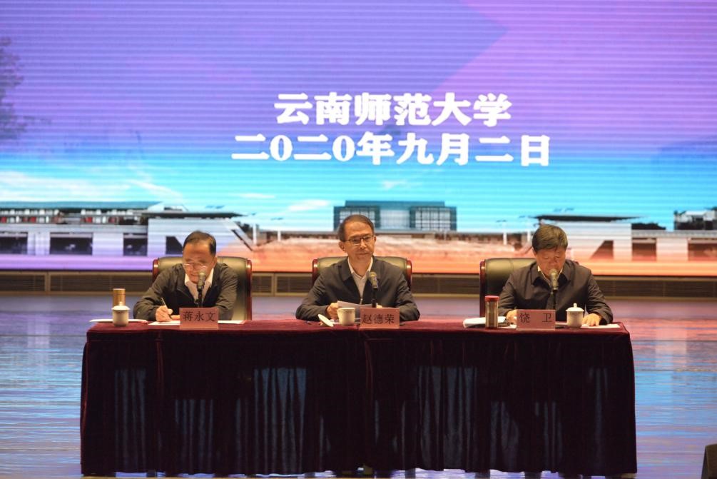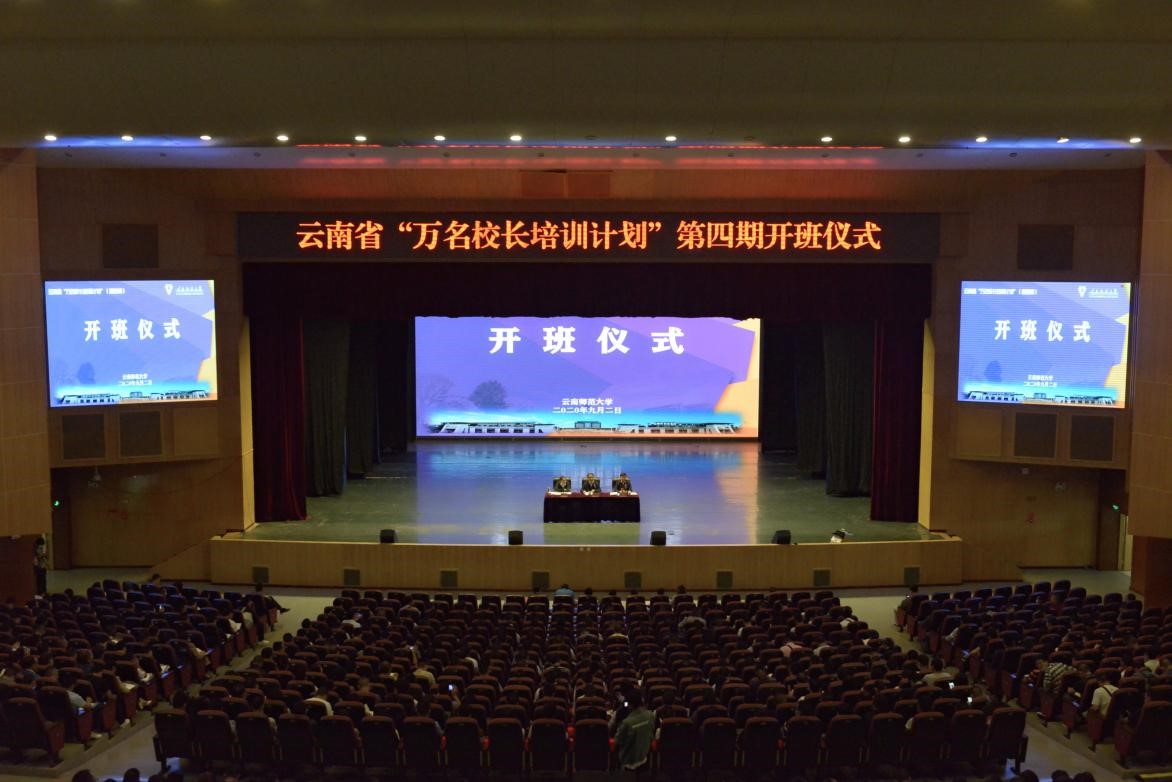 9月2日上午,由437必赢会员中心承办的云南省“万名校长培训计划”第四期培训班开班仪式,在昆明理工大学呈贡校区红土会堂举行。云南省教育厅副厅长赵德荣,437必赢会员中心党委书记饶卫,党委副书记、校长蒋永文,副校长武友德,省教育厅教师工作处处长雷韬、副处长冯霞,437必赢会员中心党委办公室、校长办公室、党委宣传部、万名校长培训计划项目办公室等部门负责人,以及来自全省16州(市)的1018名“万名校长培训计划”第四期参训学员参加了开班仪式。开班仪式由蒋永文校长主持。