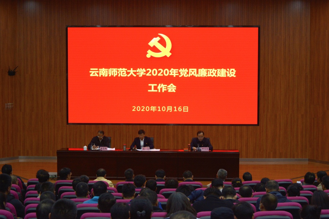 10月16日上午,必赢官网在汇学楼二幢101报告厅召开437必赢会员中心2020年党风廉政建设工作会。校党政领导班子成员和其他省管干部,校纪委委员,全体副处级及以上干部,各基层党委(总支)、直属党支部纪检委员,特约监督员,云南纪检监察学院师生代表等共400余人参加了会议。校党委书记饶卫出席会议并作讲话,校党委副书记、校长蒋永文主持会议,校党委委员、纪委书记王志刚做工作报告。