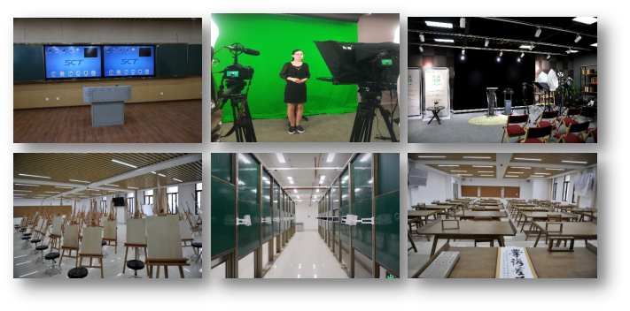 以现代信息技术融合发展赋能专业课程建设。疫情期间,98.6%的应开课程实行线上教学,提升学校课程资源信息化、在线化水平,基本构建了满足时时、处处、人人学习的教学资源体系,经过近三个月的在线教学运行,教师已掌握在线教学技术要求和基本规律、熟练应用教学平台和教学工具,学生也适应在线授课方式,提升了教师开展线上线下混合式教学水平和学生自主学习能力。以“聚集公共教学资源、彰显教师教育特色、构建‘互联网+’的信息化教学环境”的教师教育国家级教学实验示范中心于2017年顺利启用,建成了一批智慧教室、云平台机房、校企合作项目超星尔雅工作室、沪滇合作项目智慧树闻道课栈、课件自助制作室、移动学习资源工作室、公共艺术实训室、多功能课程资源制作实验室,为专业和课程建设提供了良好的实验实训条件。