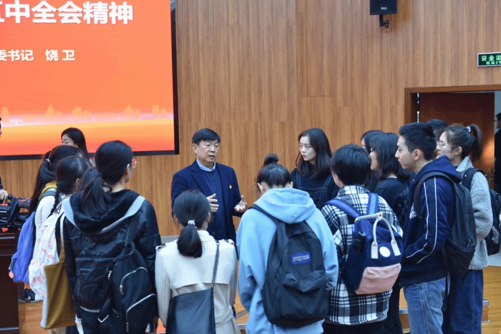 宣讲结束后,现场师生代表还就宣讲内容,结合工作、学习实际与饶卫书记进行交流。马克思主义学院教师孔卫英表示,作为一名思政课教师,将认真学懂、弄通、悟透五中全会精神,紧紧围绕立德树人根本任务,不断夯实理论基础,自觉将全会精神贯彻落实到教育教学全过程,让同学们在学习中坚定对中国特色社会主义道路、理论、制度、文化的自信,在实践中与祖国同命运、共发展,在全面建设社会主义现代化国家新征程中激扬起青年一代的中国梦。教育学部学生周玲萍表示,通过宣讲,对党的十九届五中全会精神的认识更加全面和深入,全会擘画的宏伟蓝图吹响了新征程、新奋斗的号角,让人振奋、催人奋进。作为新时代的大学生,将认真学习领会全会精神,坚定理想信念,提高文化素养和专业基础,更好地肩负起新发展阶段赋予的职责和使命。大家纷纷表示,宣讲报告聚人气、增底气、接地气,聆听后受益匪浅,对全会精神有了更加宏观和更加深刻的把握。将更加紧密地团结在以习近平同志为核心的党中央周围,以习近平新时代中国特色社会主义思想为指导,强化使命担当、责任担当,奋力谱写云南师大新时代高质量发展新篇章,为把我国建设成为富强民主文明和谐美丽的社会主义现代化强国、实现中华民族伟大复兴的中国梦作出更大贡献。
