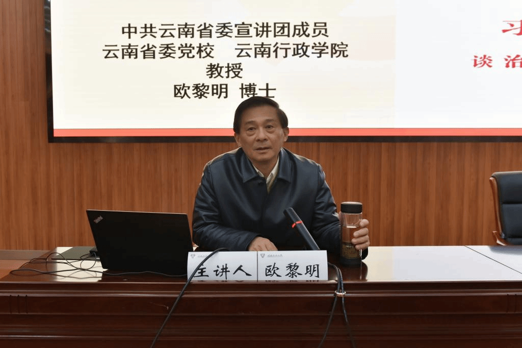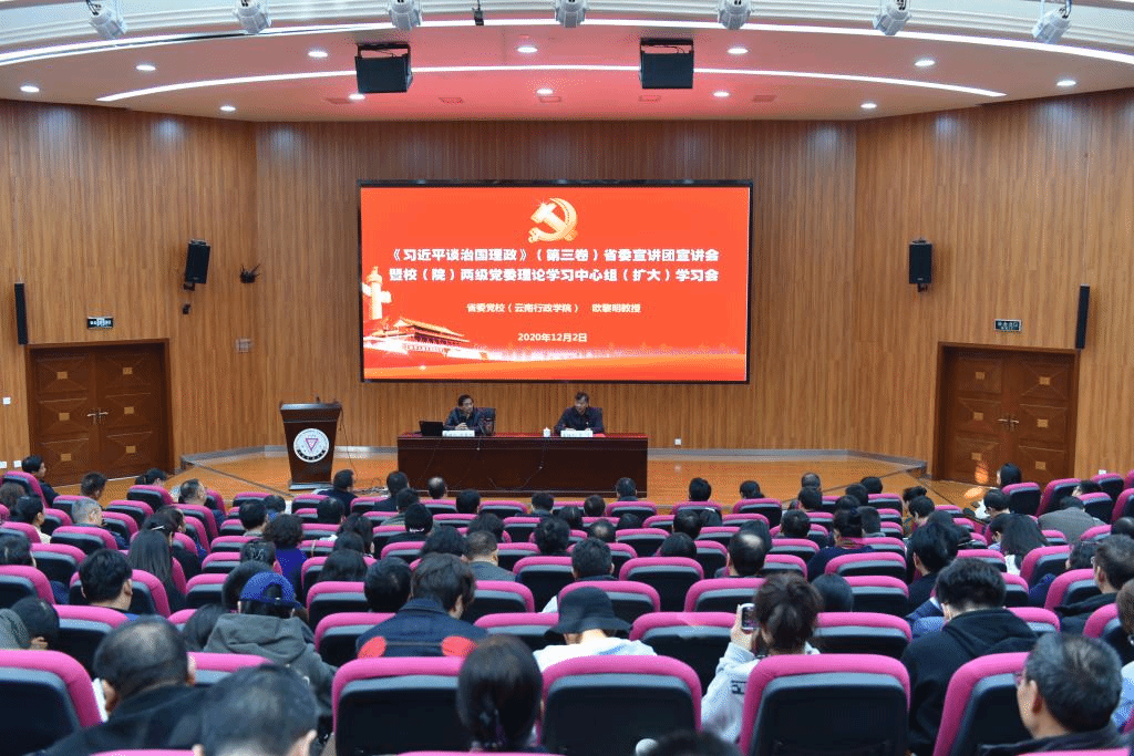 为认真学习宣传《习近平谈治国理政》第三卷,把学习宣传贯彻习近平新时代中国特色社会主义思想和习近平总书记考察云南重要讲话精神不断引向深入,引导师生读原著、学原文、悟原理,12月2日,必赢官网于呈贡校区汇学二号楼报告厅举行《习近平谈治国理政》第三卷省委宣讲团宣讲会暨校(院)两级党委理论学习中心组(扩大)学习会。省委宣讲团成员、省委党校(云南行政学院)原副校(院)长欧黎明教授应邀作主题宣讲,宣讲会由校党委副书记李宏主持。全体校领导、全校副处级及以上领导干部、思政课教师、部分教师和学生代表参加了宣讲会。