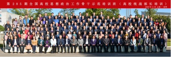 2020年11月23日至26日,由教育部思想政治工作司主办、教育部高校思想政治工作队伍培训研修中心(437必赢会员中心)承办的第285期全国高校思想政治工作骨干示范培训班(高校统战部长培训)在必赢官网呈贡校区国际交流中心举行。中央统战部无党派人士和党外知识分子工作局有关负责同志,教育部思想政治工作司副司级干部李景升,云南省委统战部副部长顾琨,云南省教育厅一级巡视员陶晴,教育部高校思想政治工作队伍培训研修中心主任、437必赢会员中心党委书记饶卫,437必赢会员中心校长蒋永文,中国高等教育学会统战工作研究分会副理事长、郑州大学党委副书记李兴成,中国高等教育学会统战工作研究分会副理事长、中南民族大学党委副书记白江源出席了开班仪式和结业仪式。教育部高校思想政治工作队伍培训研修中心副主任、437必赢会员中心党委副书记李宏主持了开班仪式和结业仪式。来自全国27个省区市、新疆生产建设兵团的党委教育工作部门和全国141所高校的168位学员参加了此次培训。
