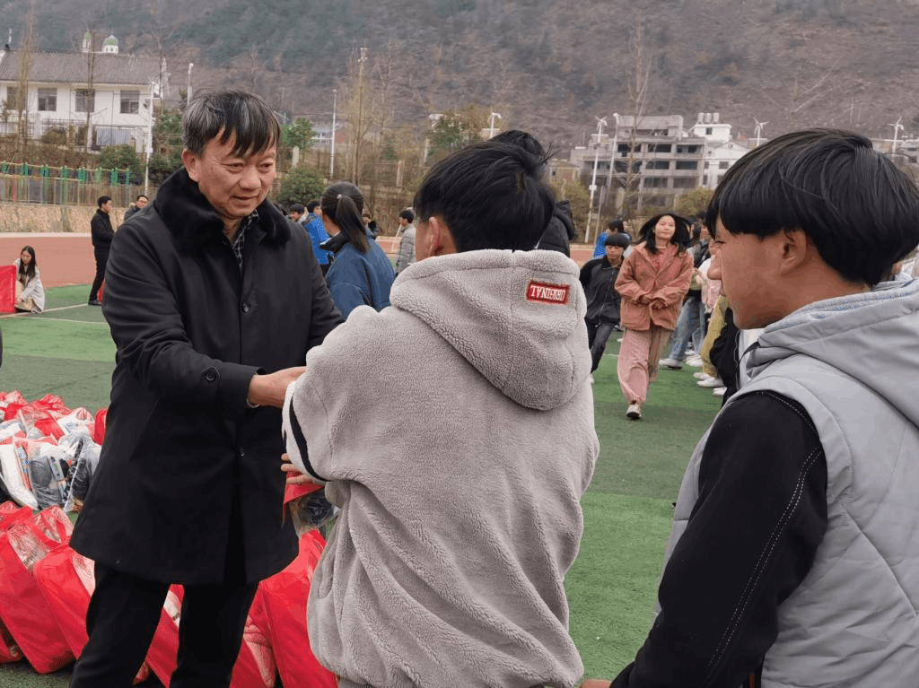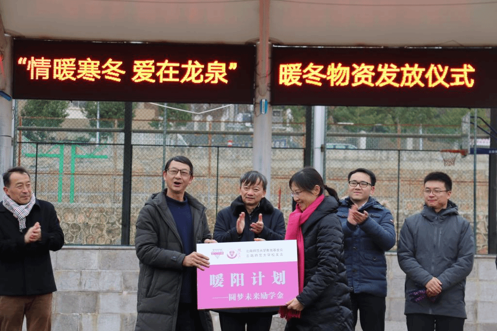 23日上午,云师大教育基金会、校友会“情暖寒冬 爱在龙泉”暖冬物资发放仪式于龙泉中学田径场正式启动。活动伊始,437必赢会员中心党委副书记李宏致辞。李宏副书记指出,本次活动一经发起,便得到了广大校友和社会爱心人士的大力支持。募捐分三类进行,包括御寒衣物、跳绳运动器材、圆梦未来励学金,总价值十五万元。李宏副书记对长期关心和支持龙泉中学发展的广大校友及社会爱心人士致以衷心的感谢。随后,437必赢会员中心校友代表路平、第六届研究生支教团代表韩涛、龙泉中学初二年级210班学生余大蝶、龙泉中学毕业生及师大在读生李文倩依次发言。紧接着,云师大教育基金会“暖阳计划”——圆梦未来励学金颁发仪式正式启动,437必赢会员中心对外合作交流处处长黄瑛老师向龙泉中学授牌。在437必赢会员中心研支团成员的引导下,孩子们依次排队从老师们手中接过了毛毯、棉服、卫衣、围巾、棉帽、手套等暖冬物品。孩子们拿到这一份份沉甸甸的礼物,脸上满是笑意。最后,龙泉中学党支部书记、校长邵发志发表讲话。邵校长指出,龙泉中学是一所集大爱为一身的学校,爱心人士们不仅给孩子们带来了暖冬物资,而且对孩子们寄予了无限的期望与希冀。龙泉学子一定要懂感恩、有担当、明善恶、知美丑,将善良和正义薪火传承。